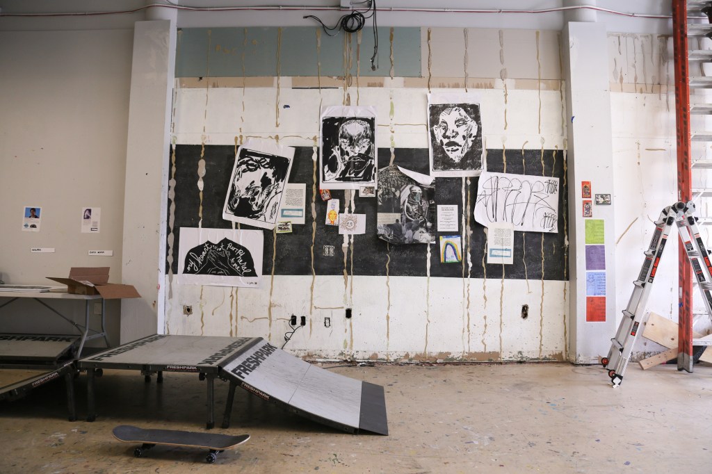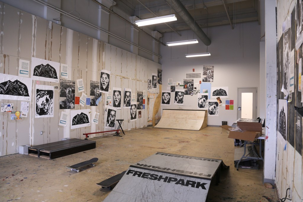 The 1223 Skate Park & Wheatpaste Gallery featured in many of the photos above allows visitors to skate inside an art gallery, collect some free prints from the exhibition, and learn to wheatpaste! This room is available by appointment only though, so please click here to learn how to make that appointment.