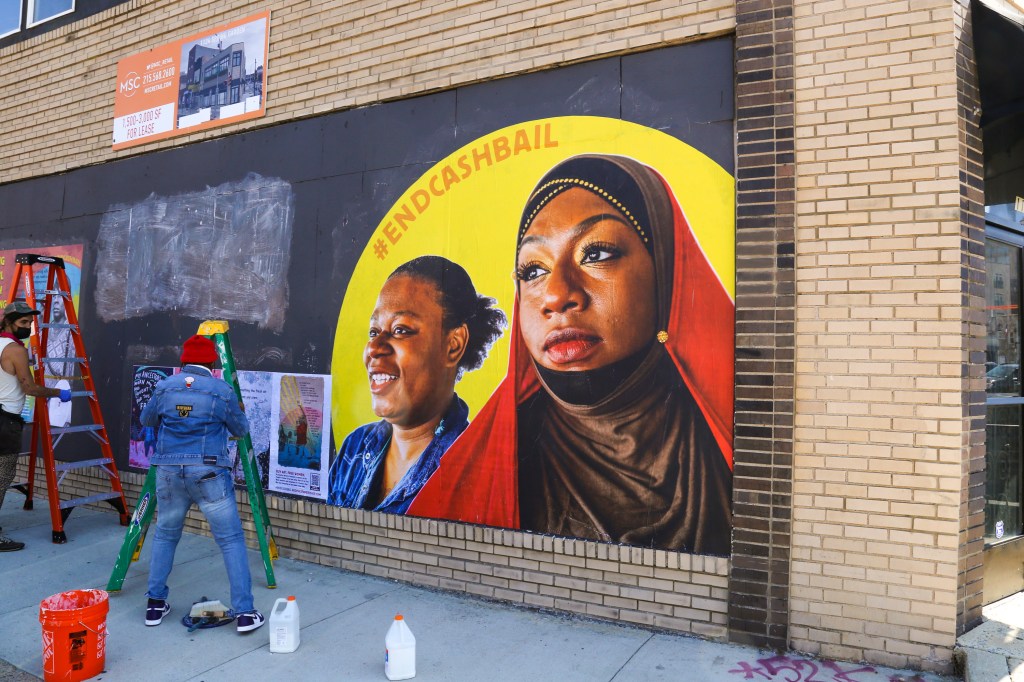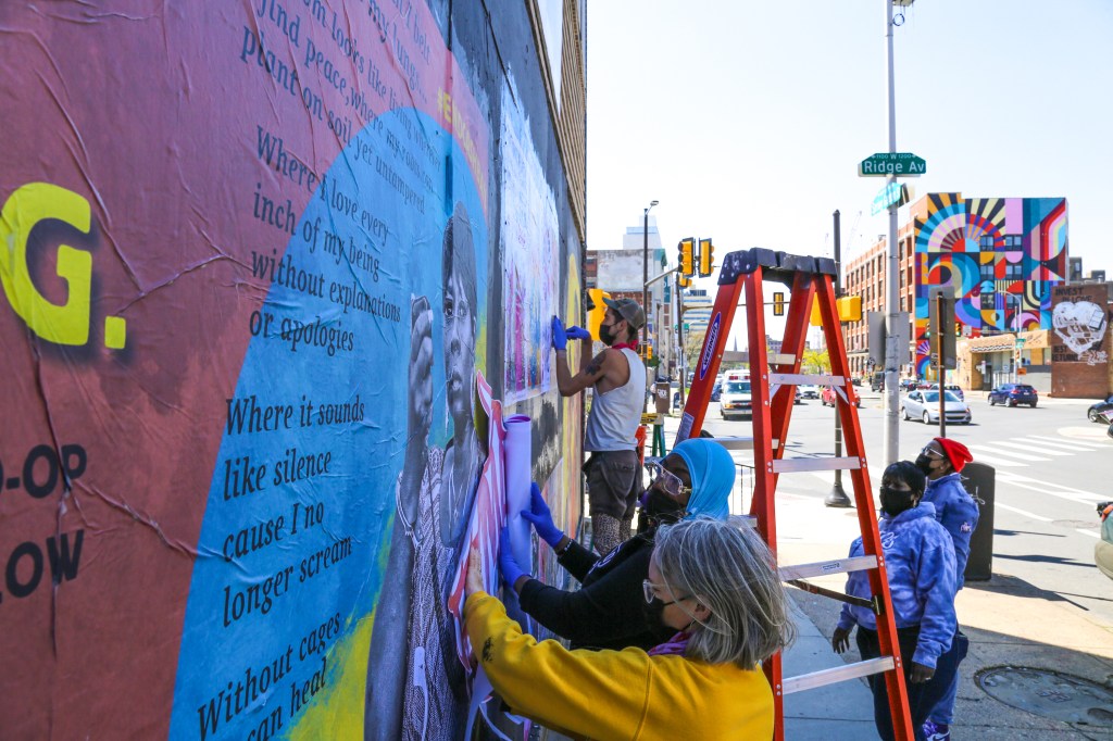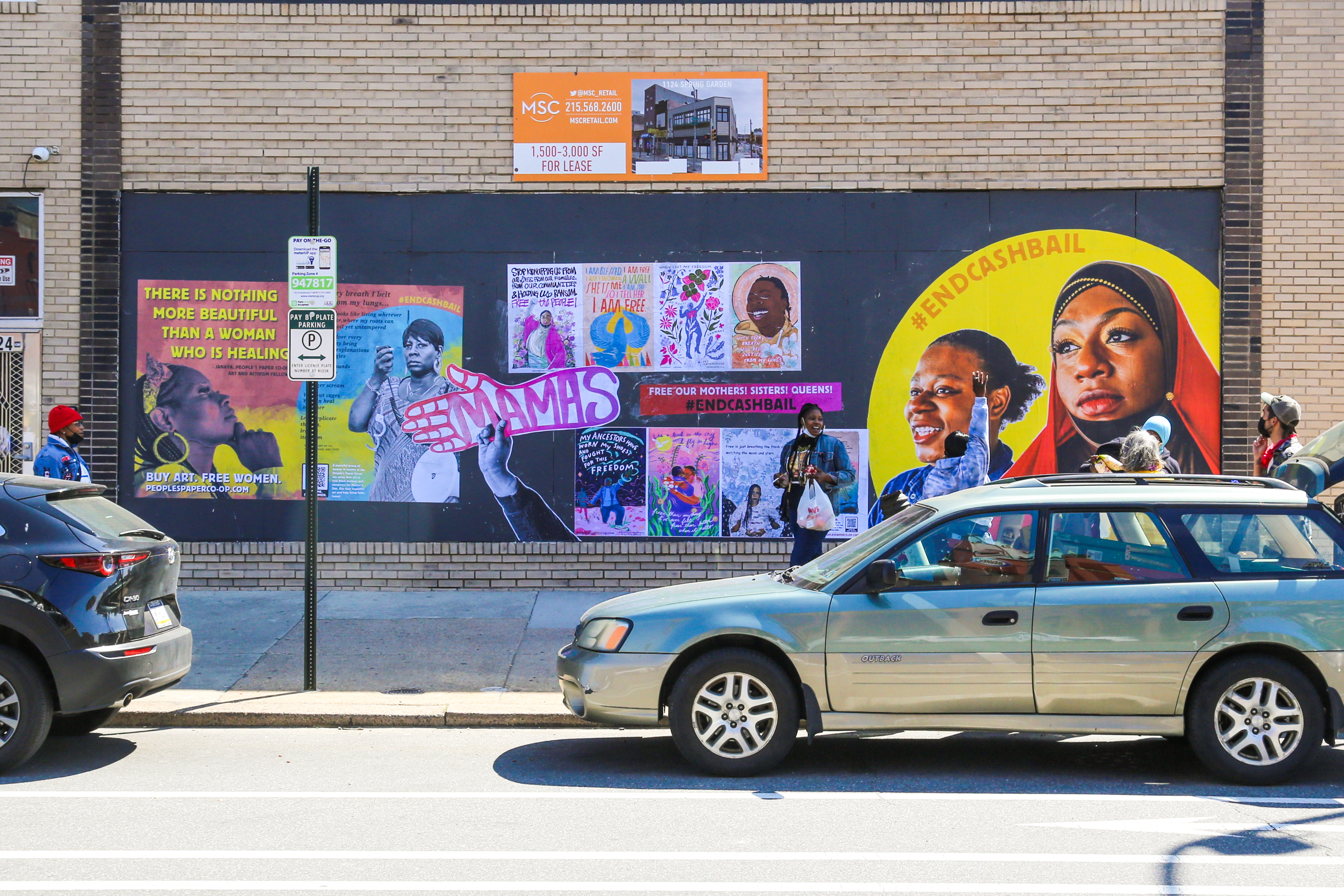 The mural photographed for this post was installed last Friday, April 23 at Ridge Avenue and Spring Garden Street. It’s just one of several installations going up around town right now to promote the 2021 Mama’s Day Bail Out Campaign webstore where you can buy art and tee shirts with 100% of proceeds go directly to the Philadelphia Community Bail Fund to free Black moms and caregivers for Mother’s Day. Please don’t wait y’all, your purchase needs to be made as soon as possible to free folks in time for Mother’s Day. Go buy the artwork now, it only takes a few minutes!