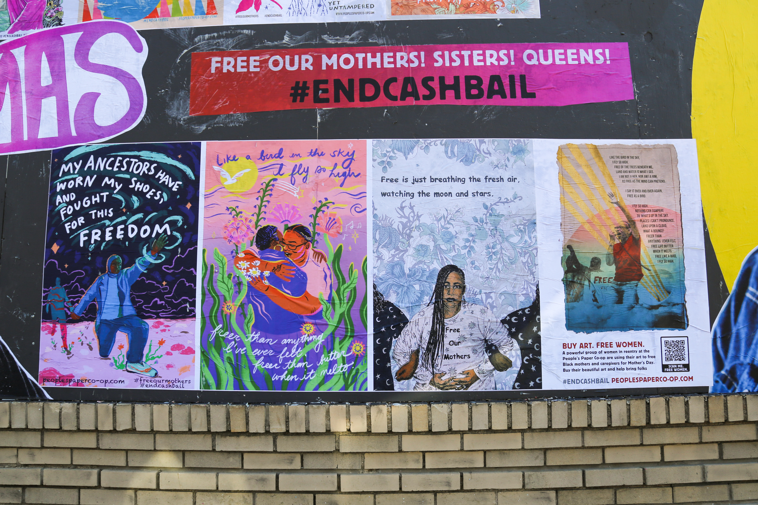 Since 2018, the People’s Paper Co-op have collaborated with the Philadelphia Community Bail Fund on their annual Mama’s Day Bail Out campaign. Each year they organize exhibitions, parades, press conferences, and events to raise awareness and funds for the project, while sharing the stories, dreams, and demands of formerly incarcerated women with thousands of Philadelphians. In that time, their poster and t-shirt sales have raised over $125,000 to free Black mothers and caregivers for Mother’s Day. And this year, they’re aiming to raise $90,000!