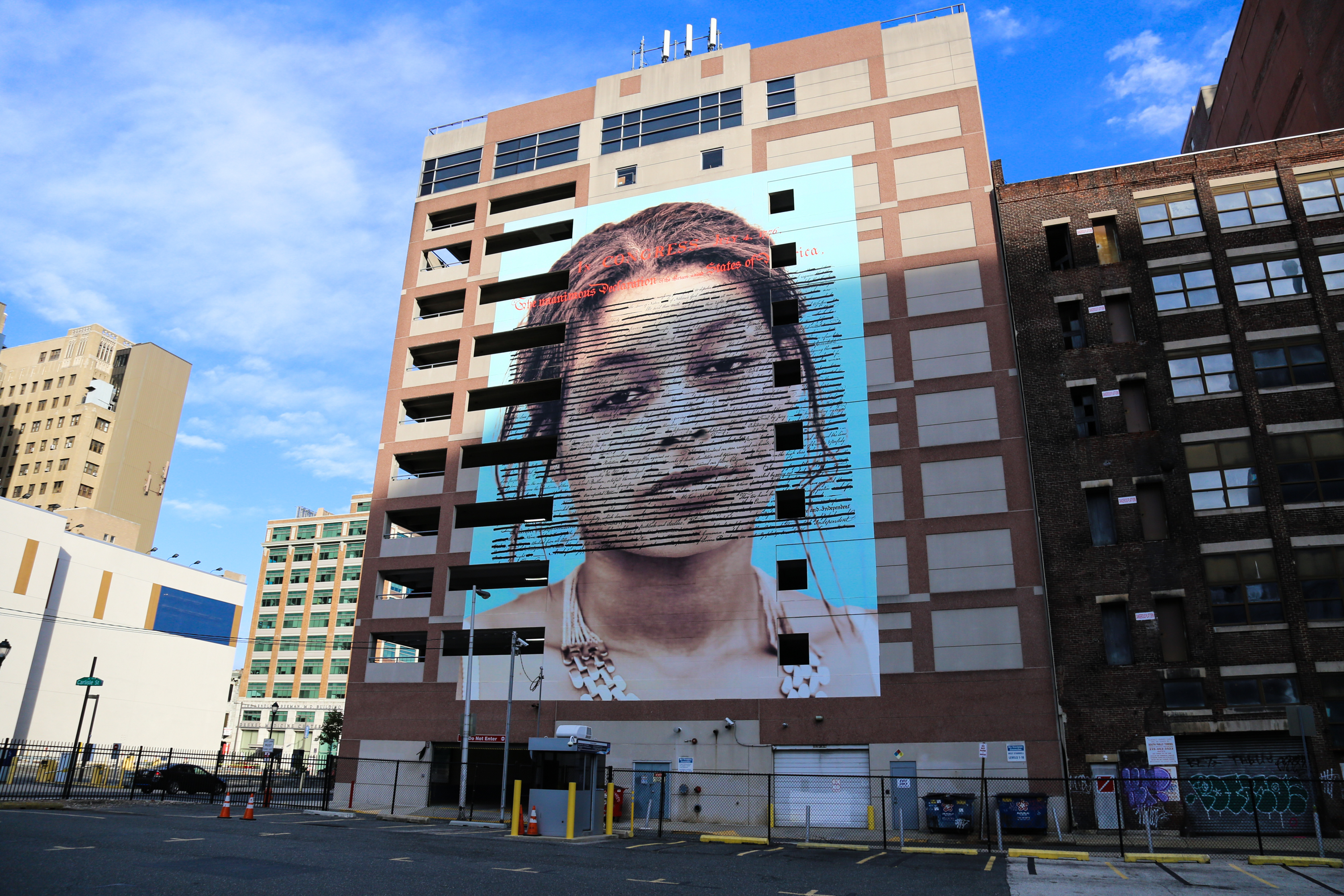 In a city that attracts so many tourists, many whom come to our city to emerse themselves in a generally unchecked patriotic lore of our nation’s founding, I find work like this incredibly valuable to have in Philly’s public space. In fact, I’d really like to see more installations like this around Independence Mall itself, but this location at 15th and Race Streets is also a super busy area with many travelers passing it daily commuting from I-676 into Center City. I hope folks see it and want to learn more about it and its creators, because it’s an important thing that we constantly reflect our full history to connect the dots of power and oppression today and work to build a more equitable future. And artworks like this in our shared spaces can play a role in igniting that.