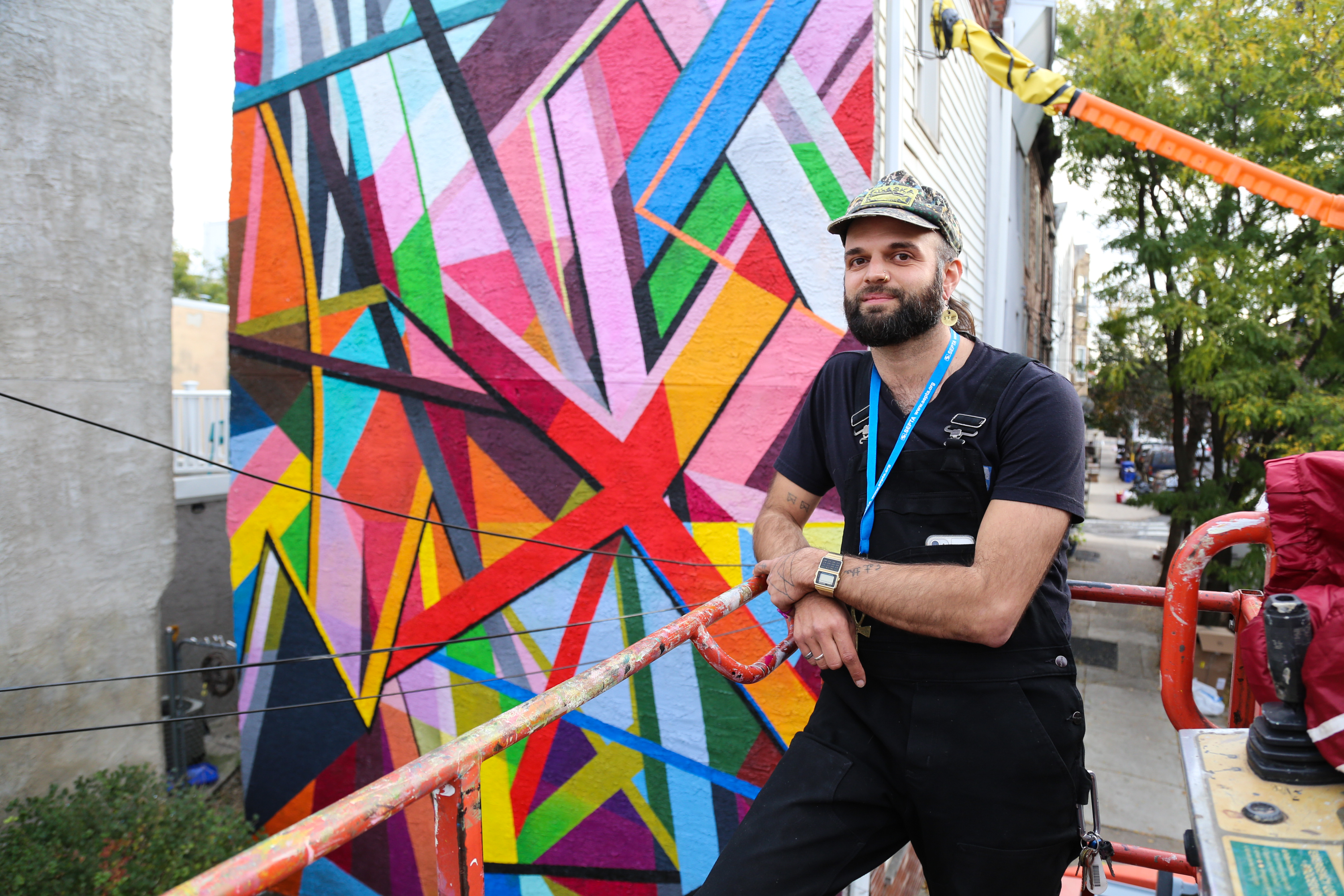 “I like to think of my abstract geometric murals as being architectural in nature,” Andrea wrote over email. “Our cities can so often be square, boring, and full of gray/brick color. Because of that I decided to start making art that is the opposite of our traditional surroundings. Almost like if you took all the components that went into building a house, threw them in a blender with a bunch of color, and made something beautiful out of the chaos that ensued.”
