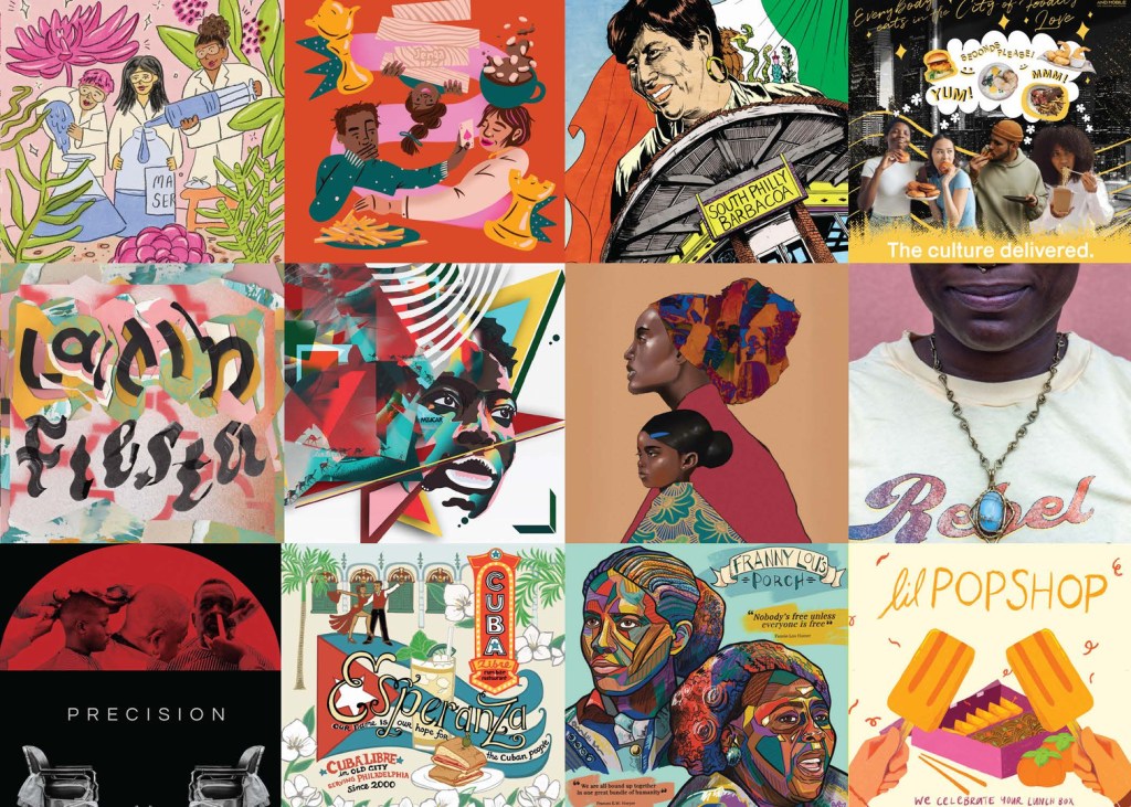For the project 12 artists with Philly roots each created two original artworks inspired by two local BIPOC and/or LGBTQ+ businesses of their choice. We’ve installed those artworks in the windows of empty storefronts around the city, where they will remain on view for at least the next month.
