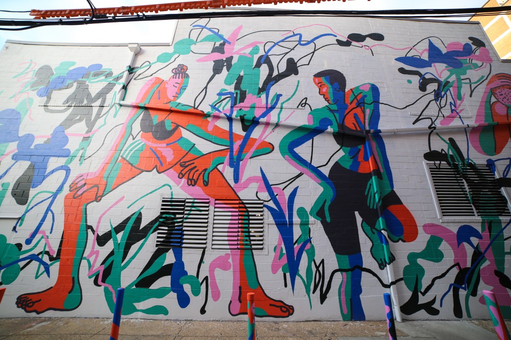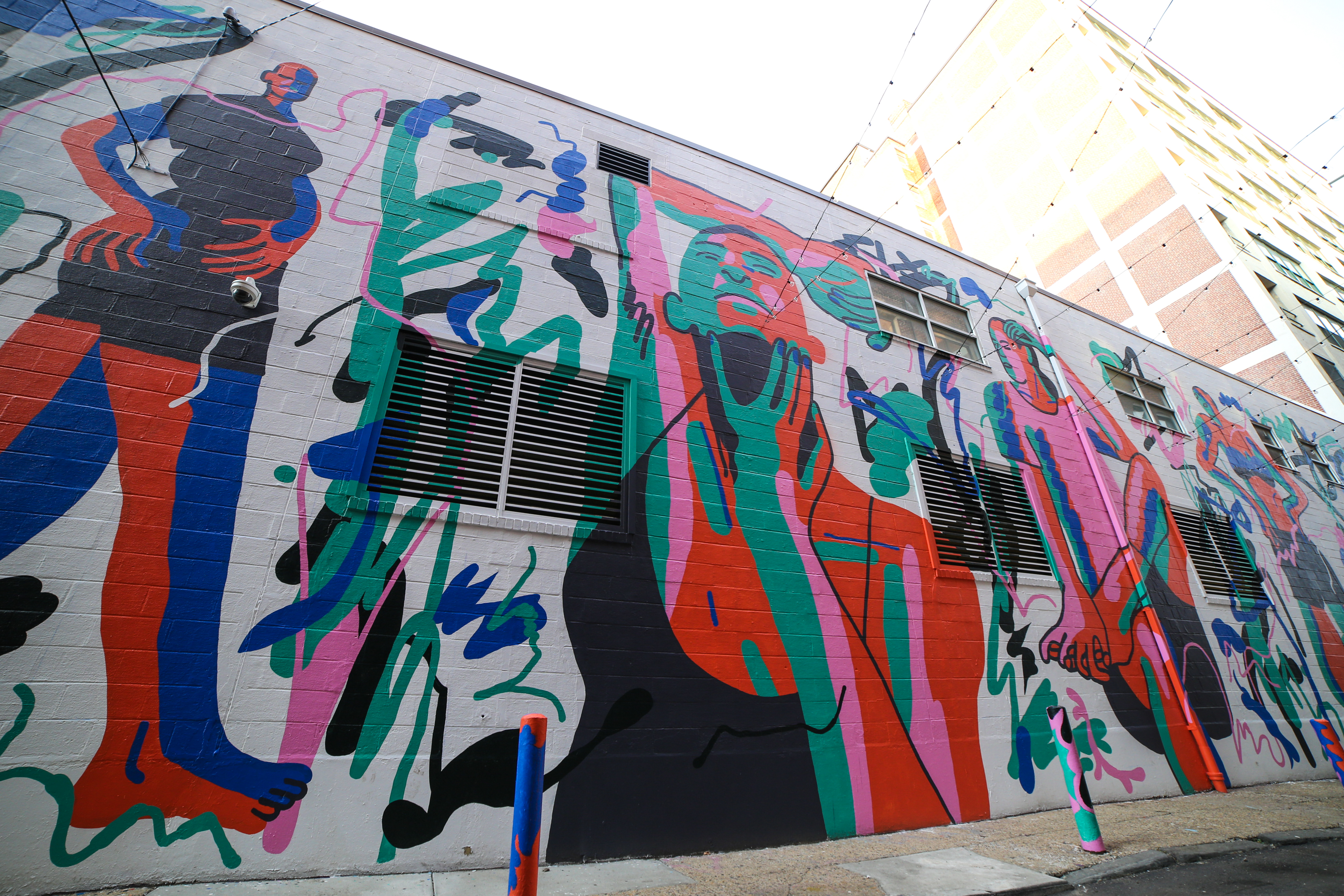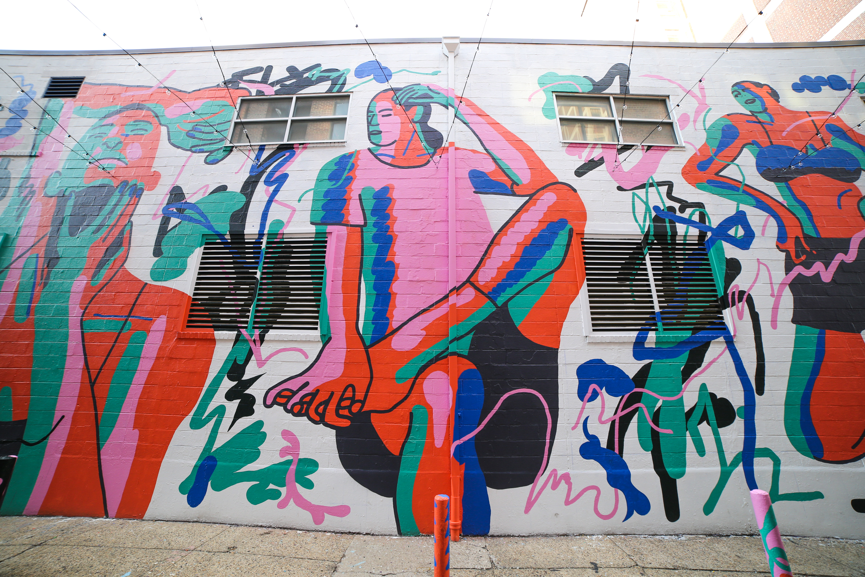 The scale and fluidity of those figures on that small street, Josh’s color choices, and the message that’s behind it–I absolutely love this mural!