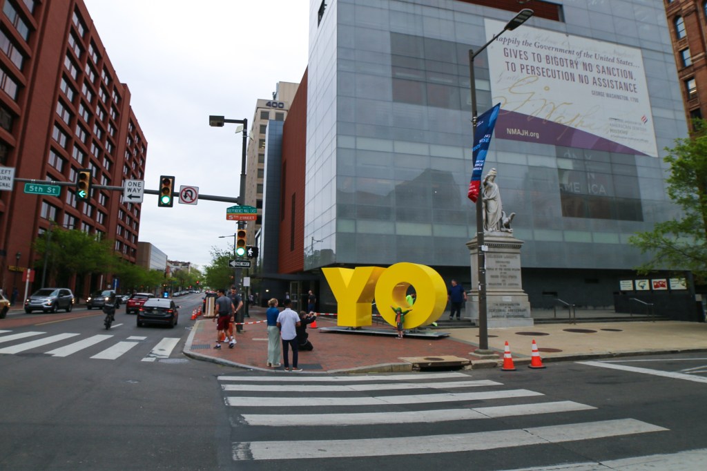 “Deborah Kass’ OY/YO sculpture is a beautiful representation of both the stories we tell inside our museum and the larger story of our nation across the street on Independence Mall,” noted Weitzman curator, Josh Perelman. “It speaks in many languages. It is ‘oy,’ it is ‘yo.’ You can use whatever tonality you want and a new meaning comes.”
