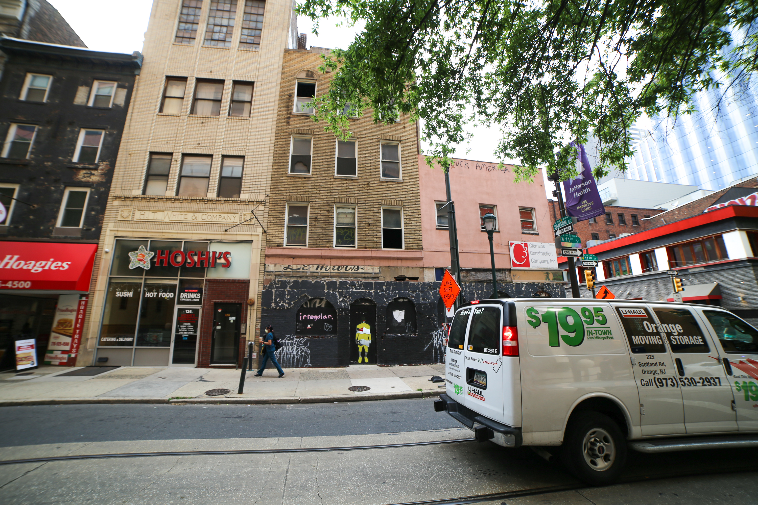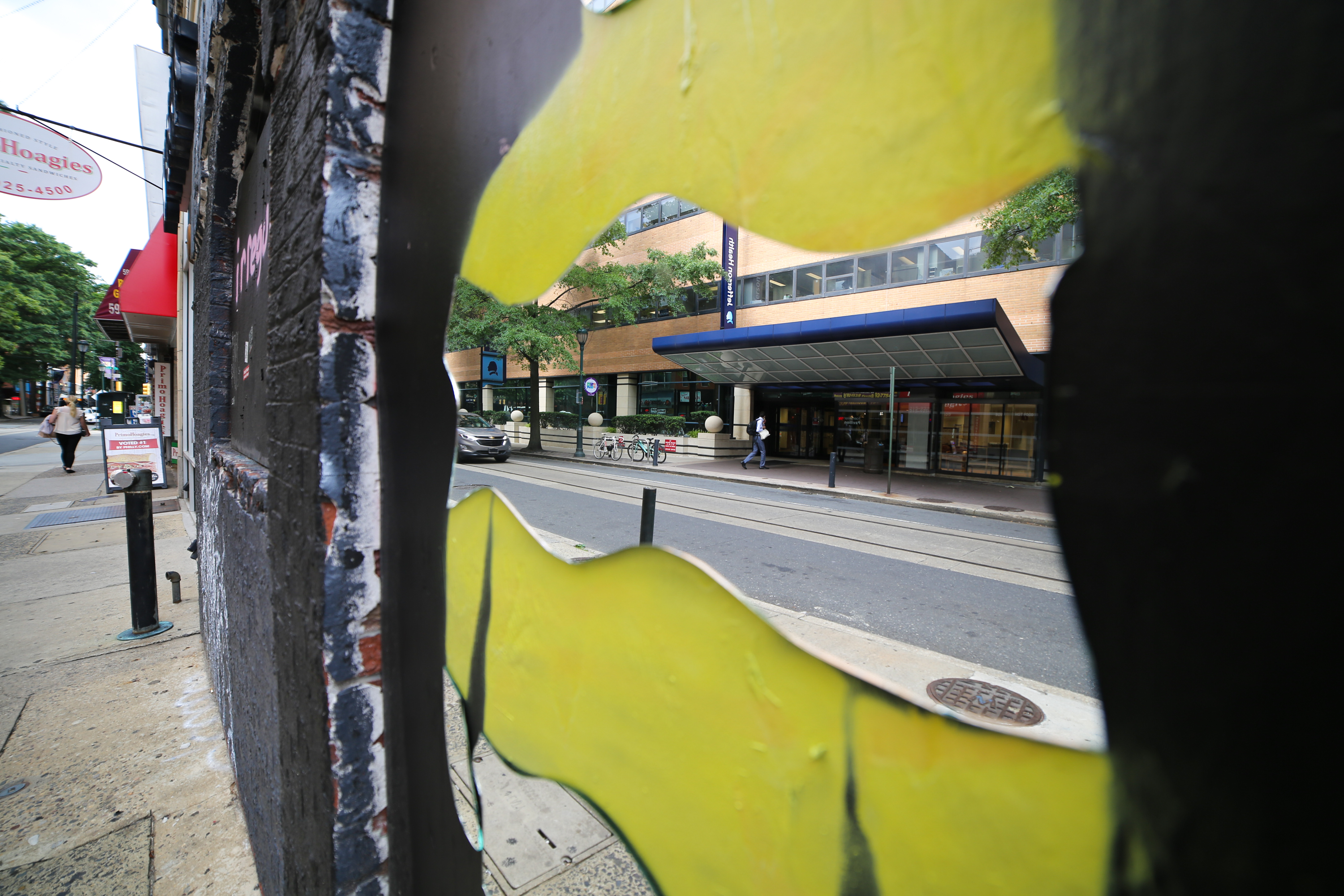 I am obsessed with this creative new street art installation by Philly-based artist, Irregular Sean! Located at the intersection of 11th and Sansom Streets, the artwork is made with spray paint (stencil) and mirror. And it’s that mirror part that you really never see in non-commissioned street art. I love it!