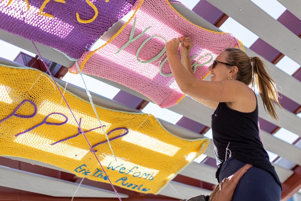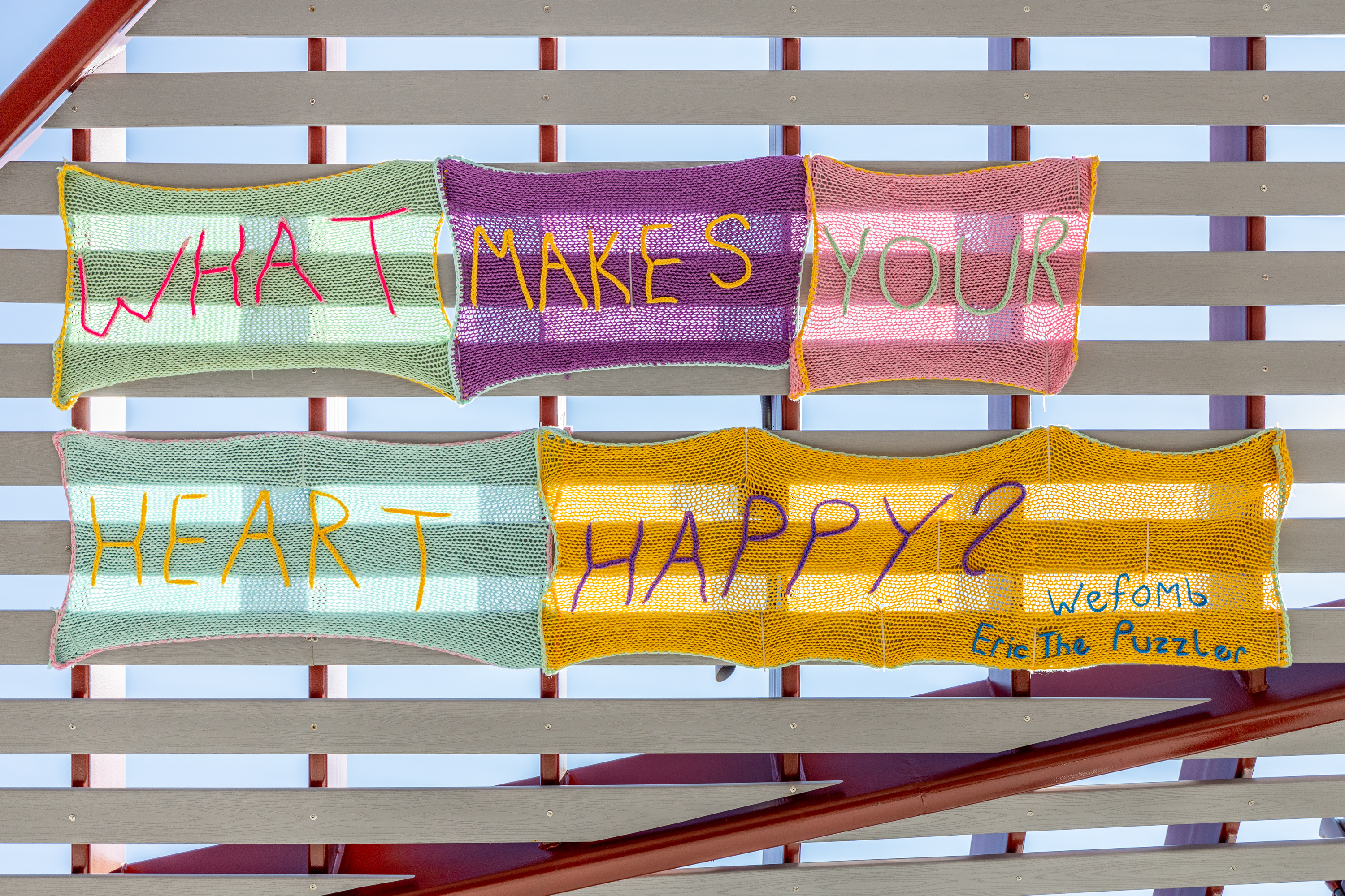 “Greta needed some on-the-ground assistance in order to create a Happy Heart Hunt in Philadelphia,” Eric says. “I helped add a little structure to ‘eventify’ the experience, and of course created the puzzles that accompany her fiber installations. She’s a sky’s-the-limit sort of person, and I’m more down-to-earth. So it’s been a perfect partnership!”