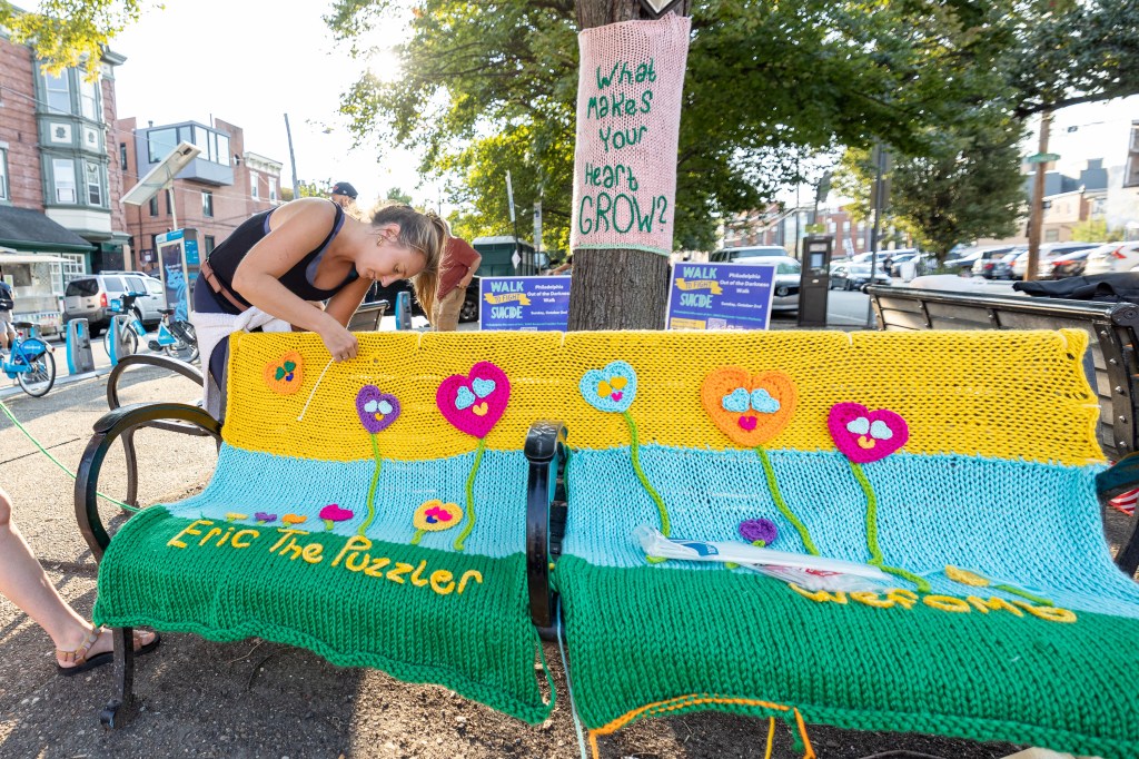 Four new yarnbombs were just installed in the South Street Headhouse District—and they’re part of an interactive event! Participants are invited to respond to the installations by doing a scavenger hunt (for kids), solving a themed puzzle (for adults), or writing on the sidewalk with chalk (for anyone). If you do participate, you can even win your own crocheted heart to take home!