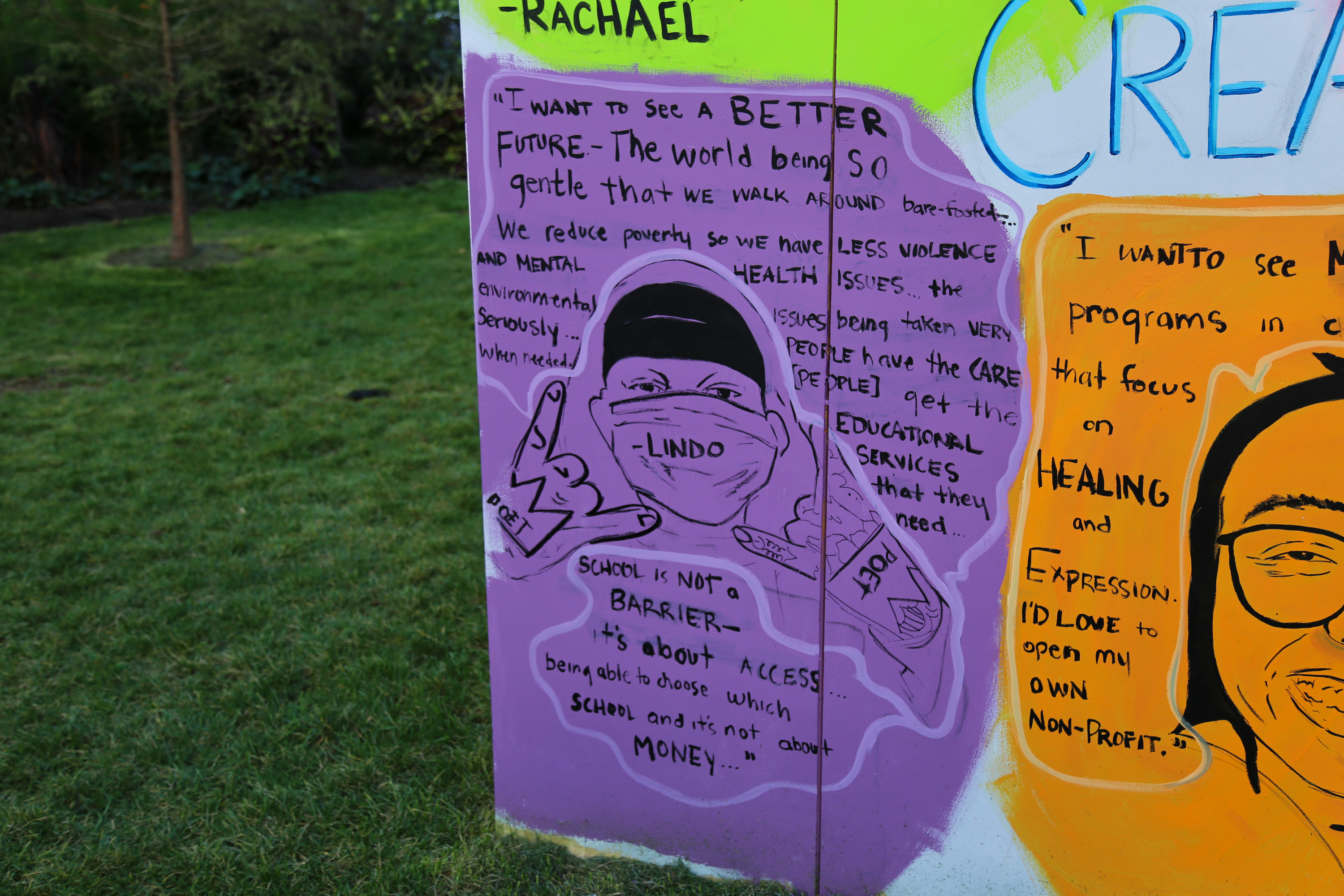 Artist Statement: “When creating this mural, my focus was to emphasize the fact that now is the time to be proactive and make your voice heard. Voting collectively makes pathways for change and hope to those fighting for a better world. The leadership starts with us.”