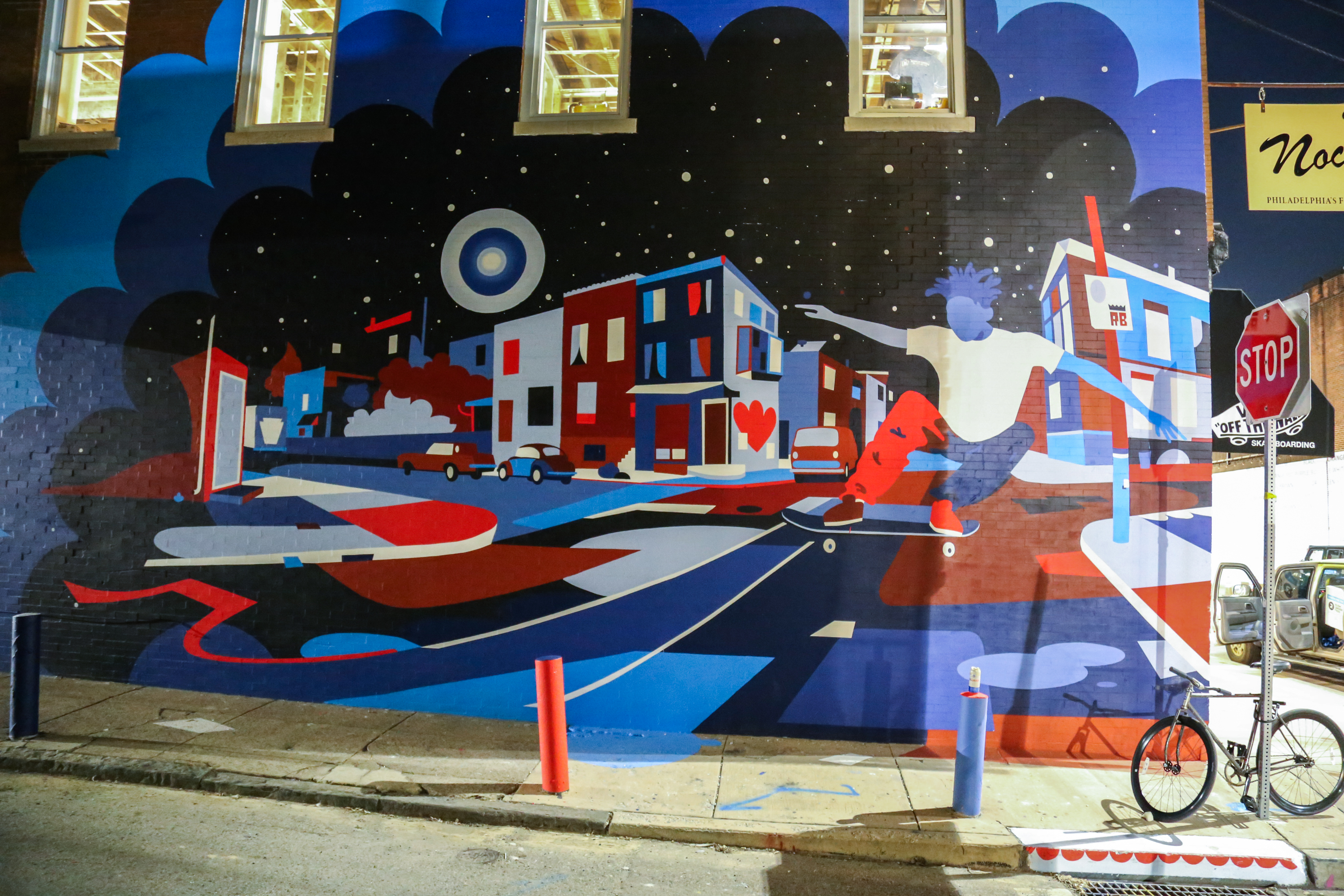 Love this new mural on Nocturnal Skateshop, located at 5th and Kater Streets off South Street!