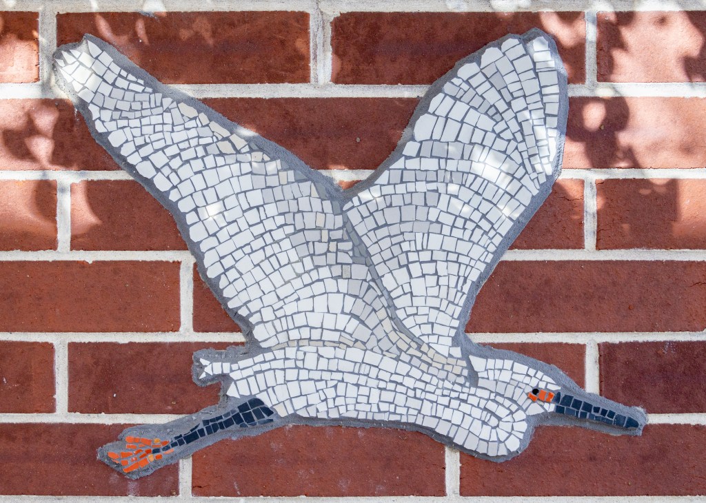 The artist also showed me a nearby egret mosaic she had made for a friend, and told me that most of her larger mosaics never get seen by anyone.