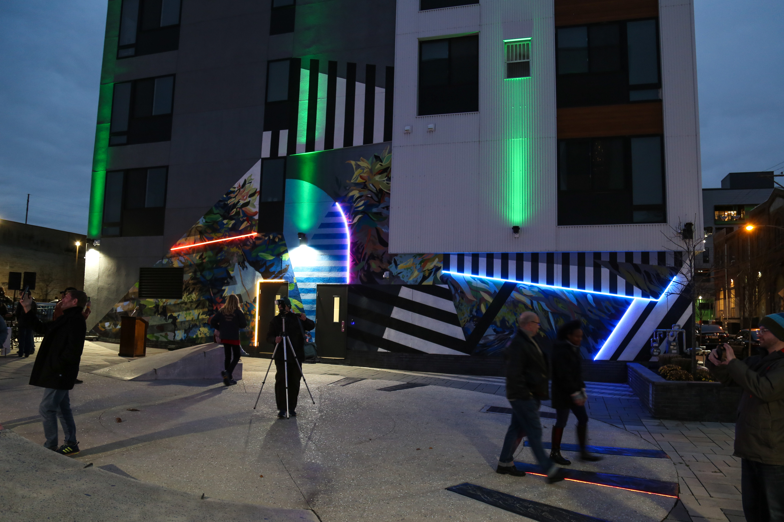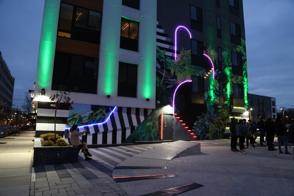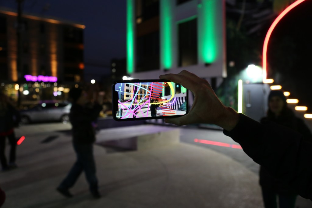 While many in Philly will surely be familiar with pervious David Guinn mural collaborations that use LED lights, like the one on Percy Street (2016) or on North 6th Street (2020), this one is so different and without-a-doubt worth a visit, if you’re not normally in the Brewerytown area. And while it’s really tough to photograph an augmented reality app, you’ll just have to take my word for it that I and all of tonight’s attendees were just absolutely taken with it!