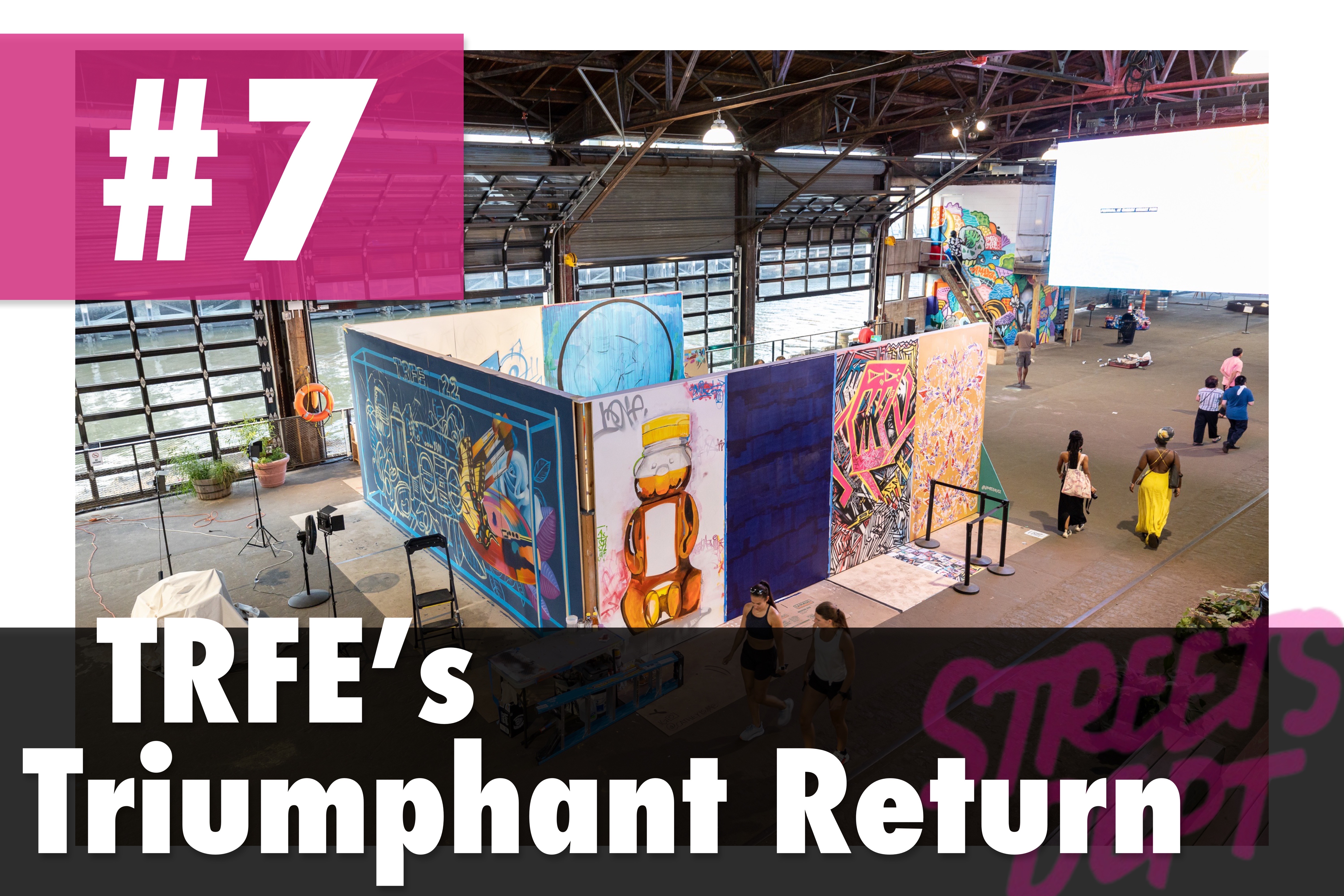 On pause since the beginning of the pandemic, the summer of 2022 saw the return of Tiny Room For Elephants (TRFE)! Since its inception in 2014, TRFE has grown from a small, underground art and music event into a large and spectacular festival—as well as an artist collective, agency, and creative consultancy. This year’s exhibition followed in the footstep’s of its 2019 iteration and took place at Cherry Street Pier where 43 visual artists and dozens of DJs and music producers participated. There’s really nothing in Philly like it, and we absolutely love it!
