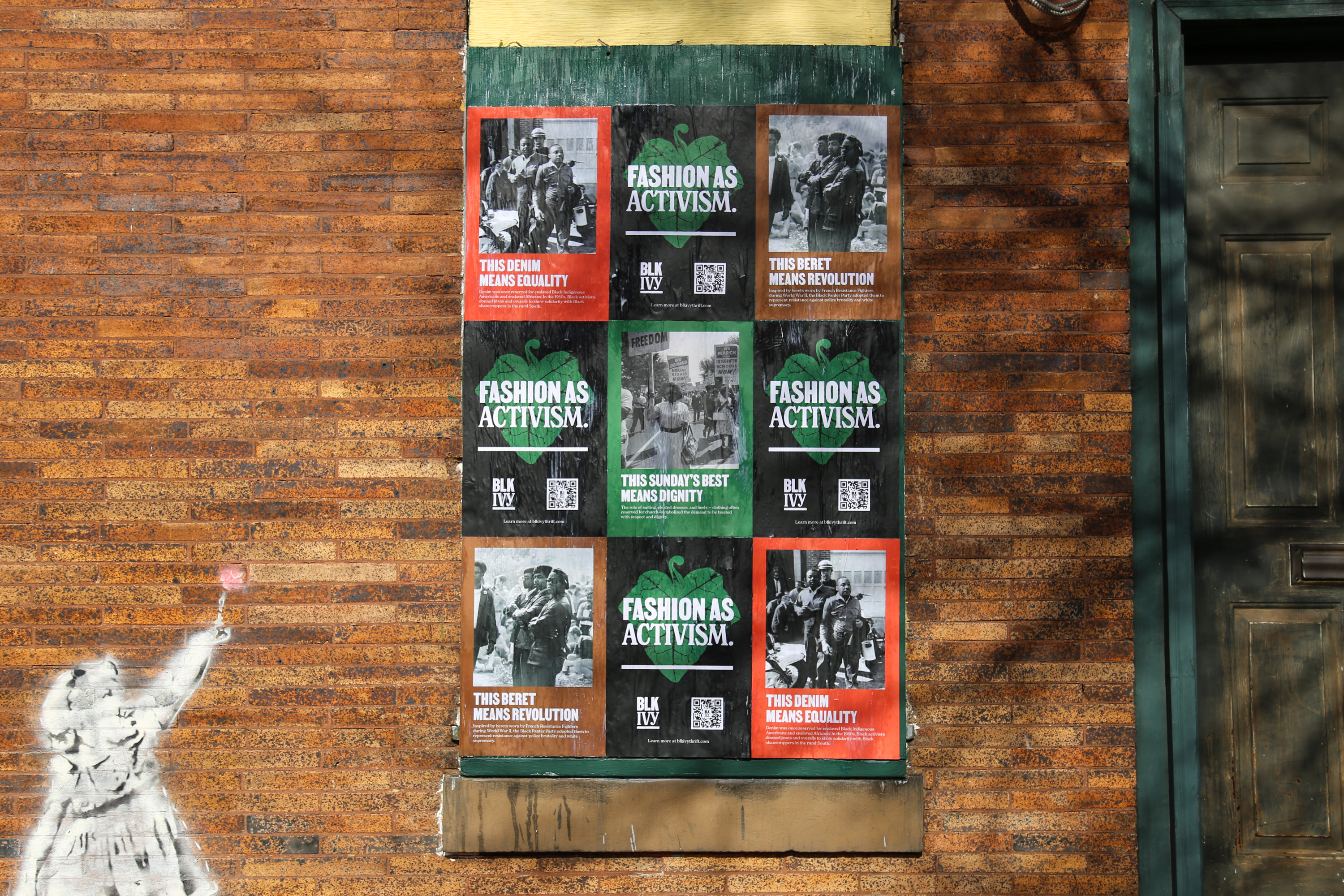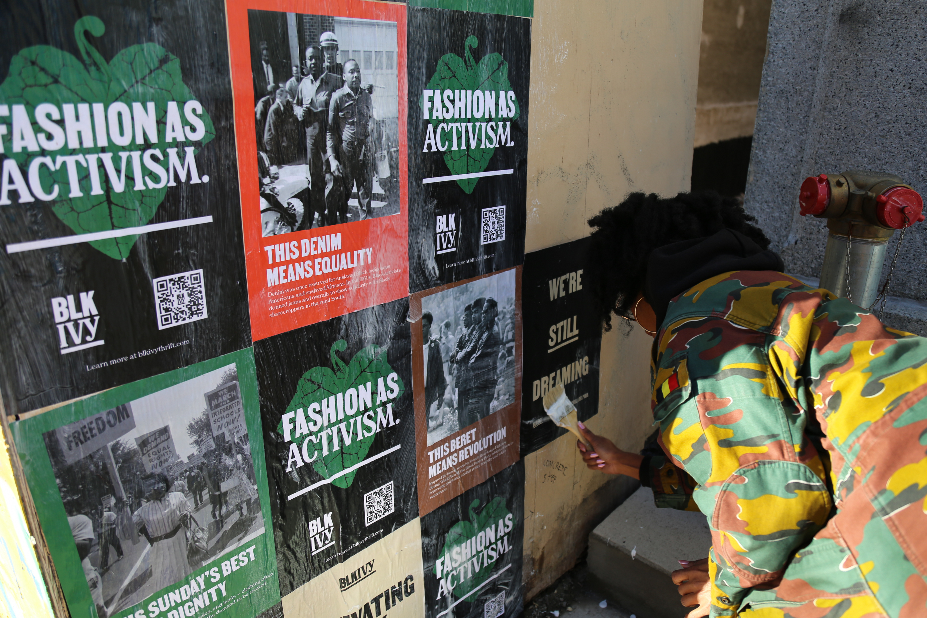 KM: We choose a wheatpaste project because we recognize the public space as a powerful canvas for storytelling, education, and provocation. As a brand, Blk Ivy wants to educate Philadelphians about how fashion has always been used as a tool for activism (particularly during the Civil Rights Movement and more broadly throughout Black culture), but we also want to revive the spirit of that era through our homage to its style. We want folks to think about just how much what and WHO they wear, matters.