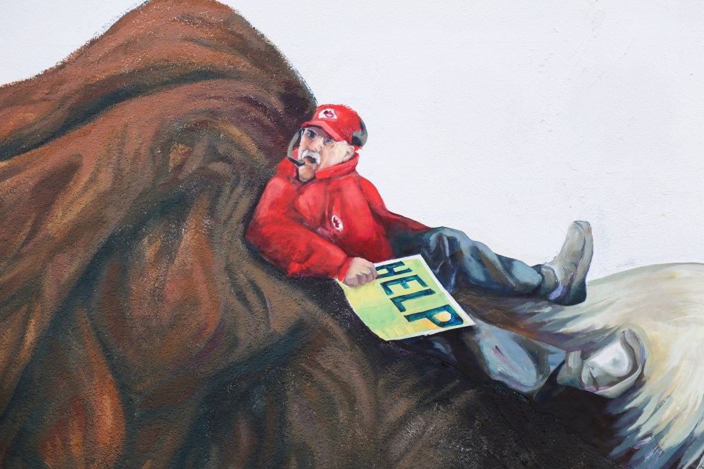 In 2018, Philly mural legend, Meg Saligman had a premonition that she put in to the form of a mural. That ultimately correct vision, was of the Philadelphia Eagles beating Tom Brady and the New England Patriots to claim our city’s first ever Super Bowl title! And being the superstitious lifelong Eagles fan that she is, she knew she had to recreate the magic for our 2023 return to the Big Game against the Kanas City Chiefs.