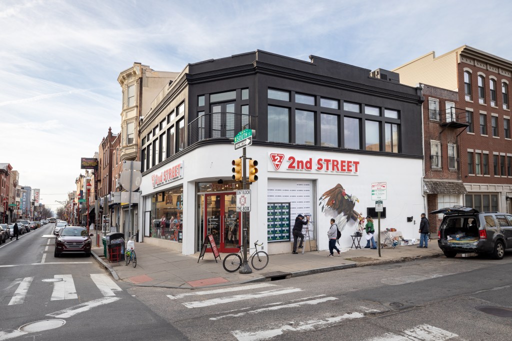 This 2023 mural is titled (perfectly), Bird Feed 2023, and can be found at 5th and South Streets!