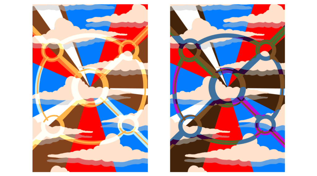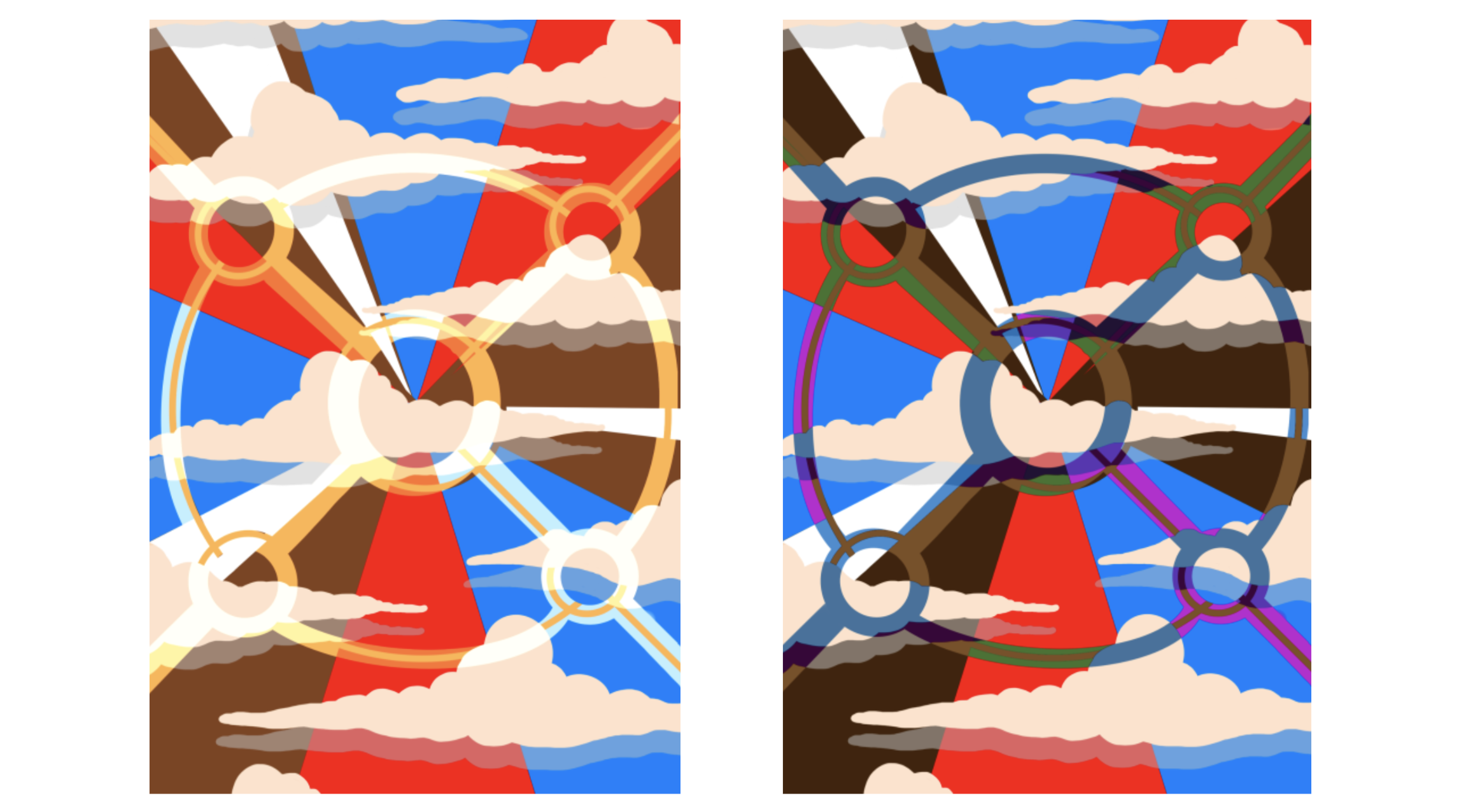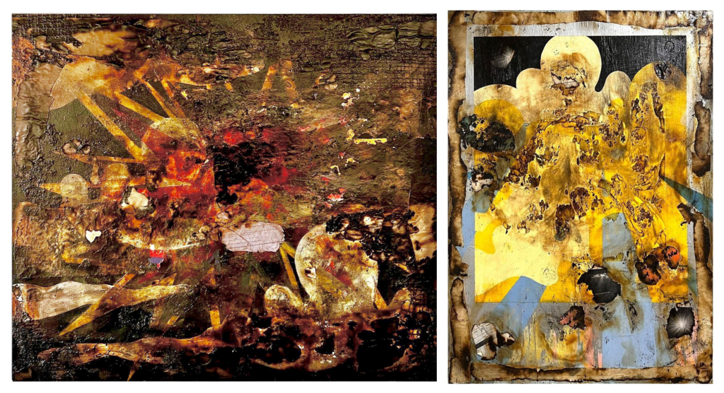 (Artworks by Taj Poscé: “BAM!, A Burning Desire” and “A New Frequency, Radio Waves & Light”)