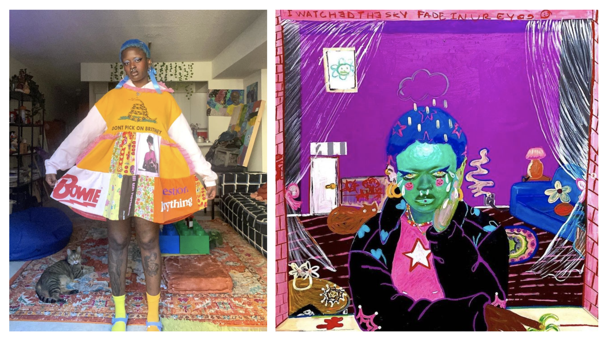 (Photo and artwork by Z the Rat: self portrait and “I watched the sky fade in ur eyes, the sparse clouds, red, blue, green the whole fuckin rainbow”)