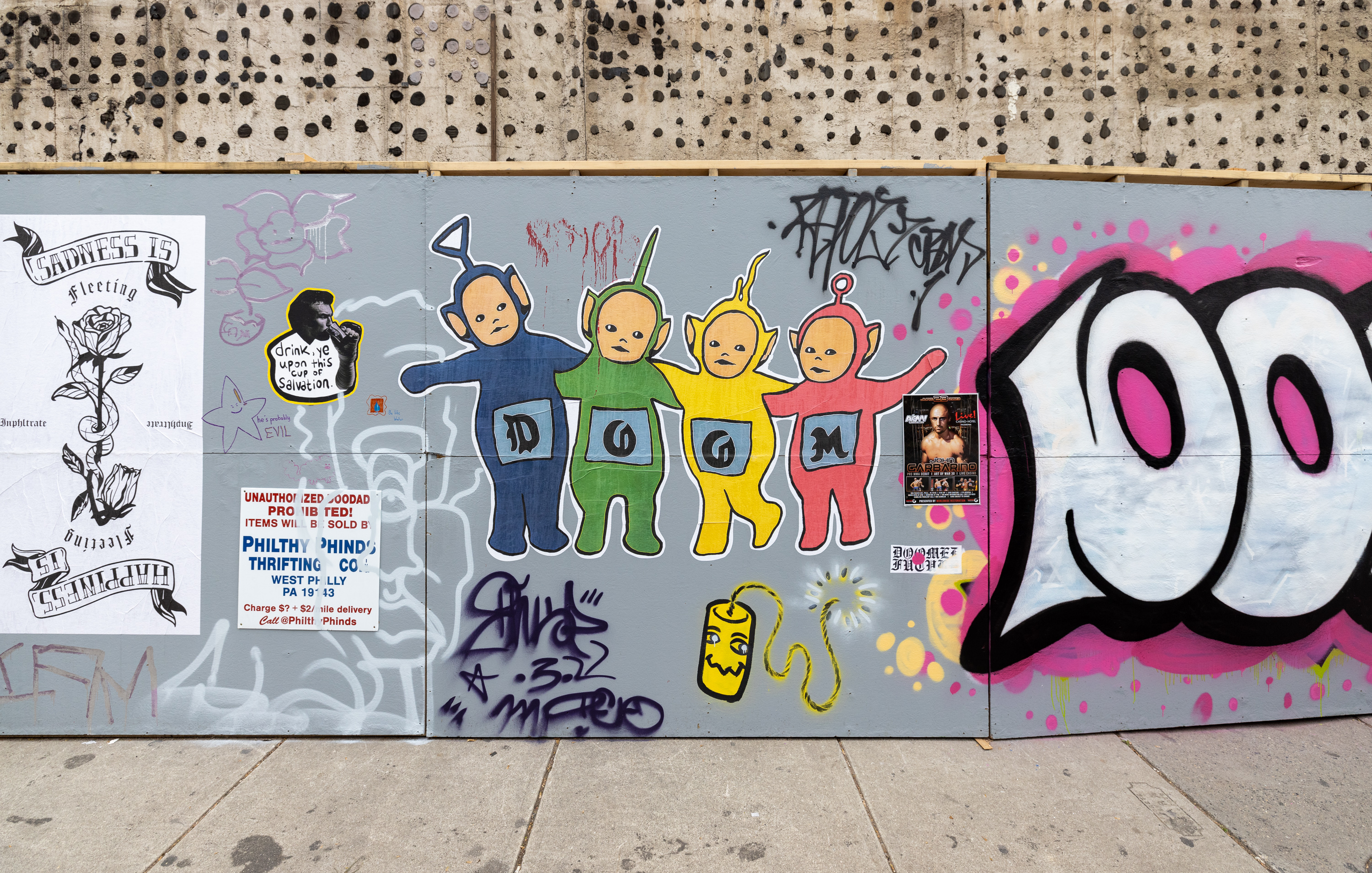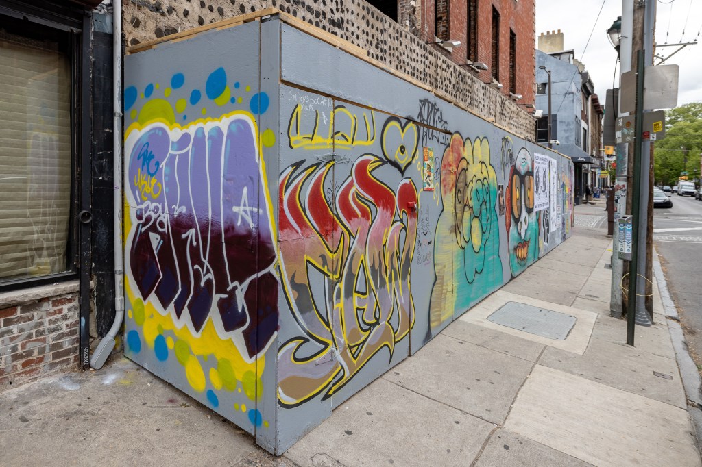 If you, like us, have been mourning the construction wall that resided at 5th and Bainbridge Streets for what seemed like a decade, we have some good news: there’s a new construction wall in the South Street Headhouse District that artists have explicit permission to display their works on! (In the biz, we call that a “freewall.”)