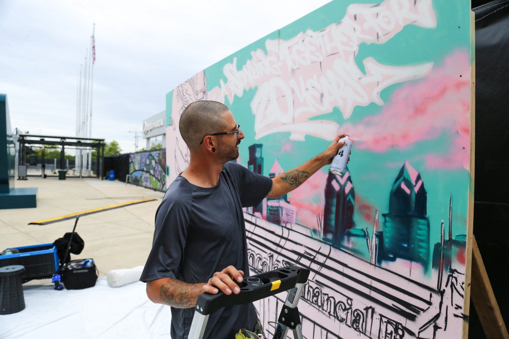 Very excited for Streets Dept Walls to recently partner with Lincoln Financial Group to create a mural with a local artist to celebrate the 20th anniversary of The Linc! That incredible local artist is BUSTA, who designed the mural in three weeks and painted it in just two days.