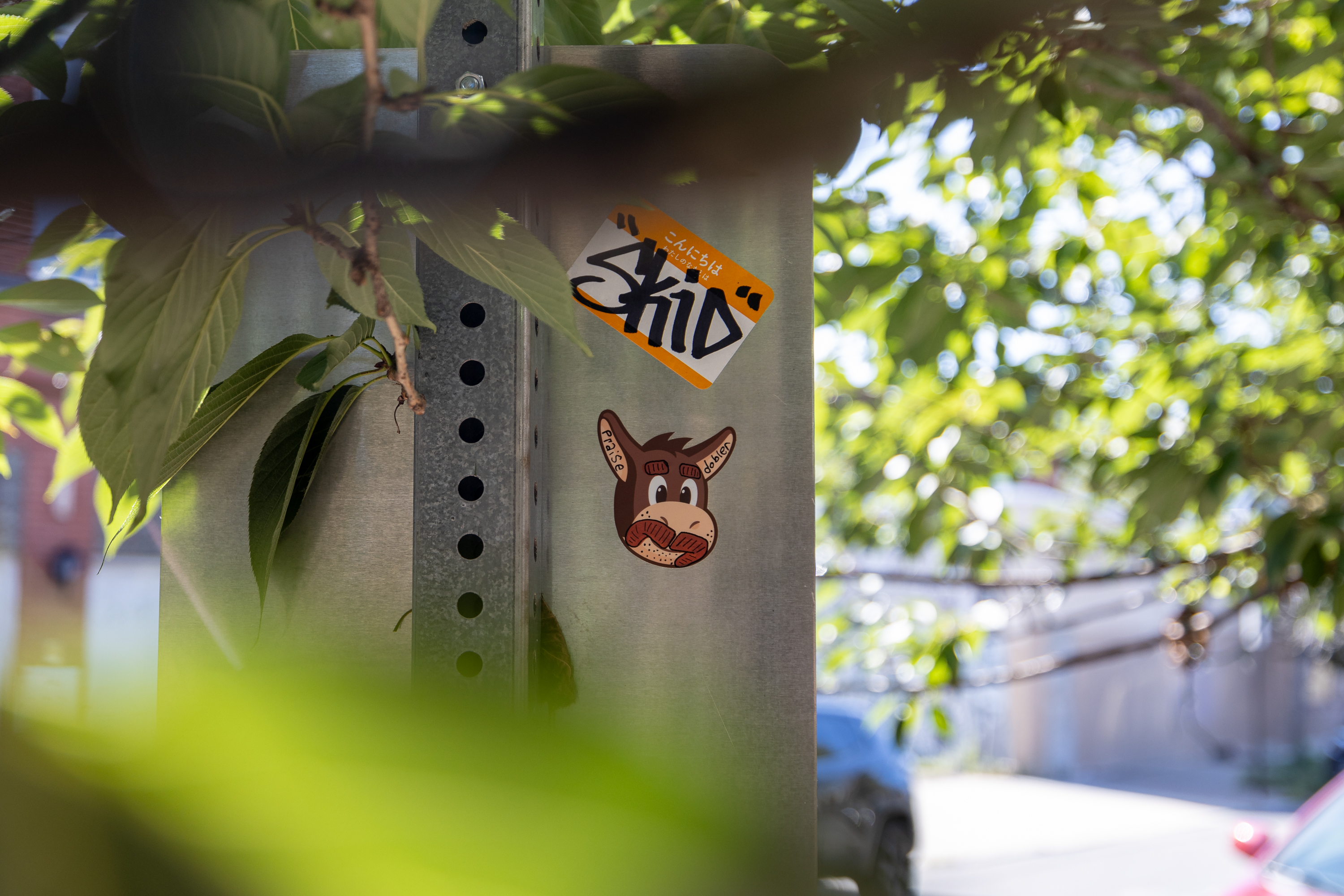 If you’ve ever seen a mustache on a sticker character, or a football with the number 69 on it, you’ve been in the presence of the Lord. But is Praise Dobler connected to a real religion? Yes and no. Is it even street art? Yes, but not like what you’ve seen before. Praise Dobler is a gray area within a gray area. But I think I really get it now—because earlier this year, I had an epiphany that put it all into context. And when I ran it past Dobler’s #1 disciple, when I sat down with him for a conversation about his artwork and message, he wholeheartedly agreed with my realization.