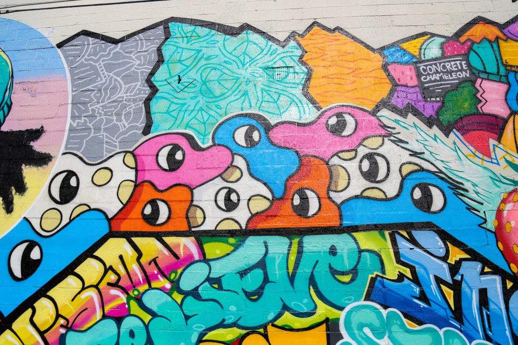 Located at Oxford and Randolph Streets outside of The Story Factory, the mural is titled Concrete Chameleon. It’s a spin-off of the Chameleon Art Show that Alloyius created this past August inside The Story Factory. For that show, Alloyius collaborated on the creation of dozens of artworks with over 40 artists. Streets Dept covered that show in a social media video that you can watch on our Instagram or TikTok.