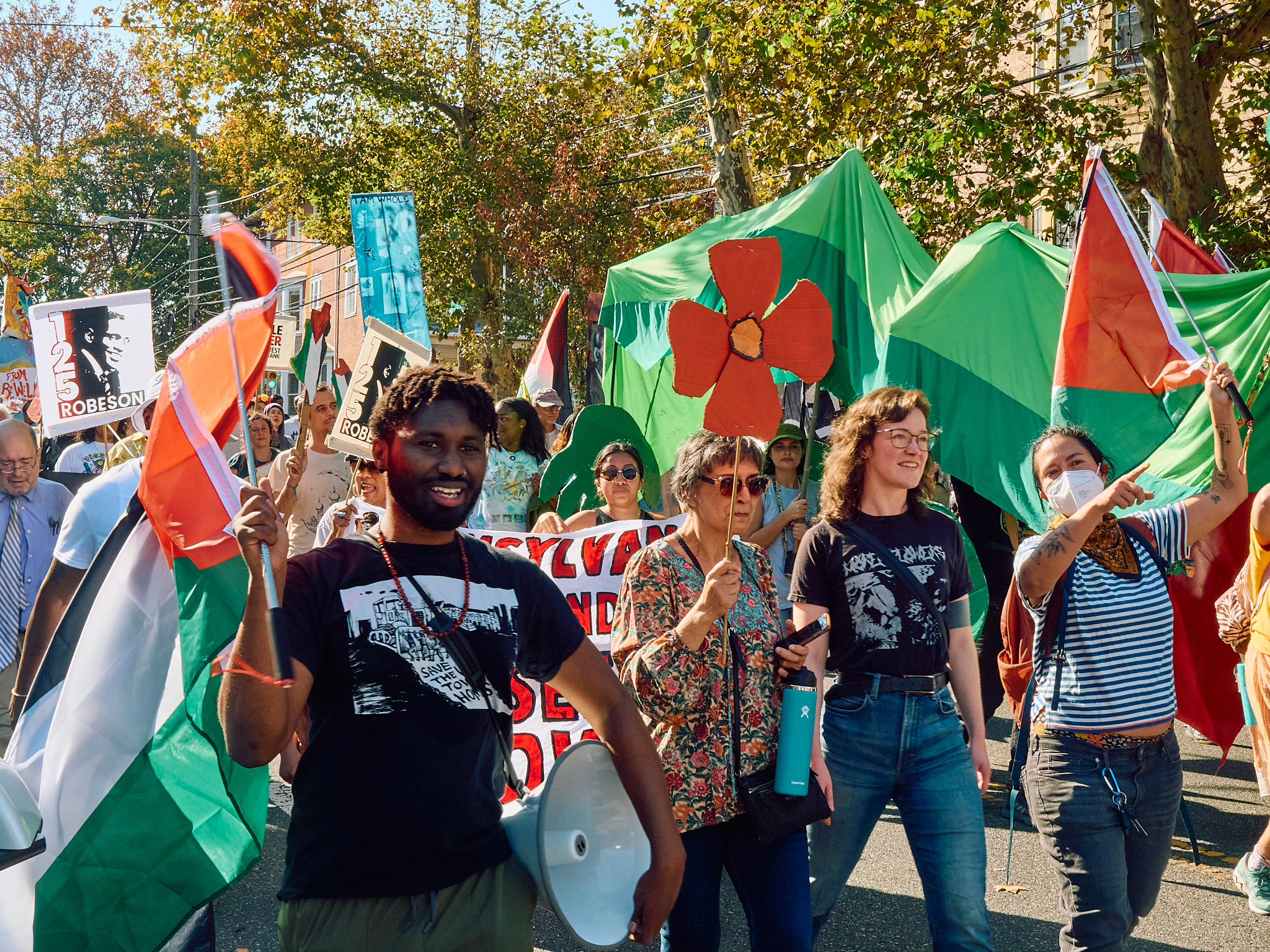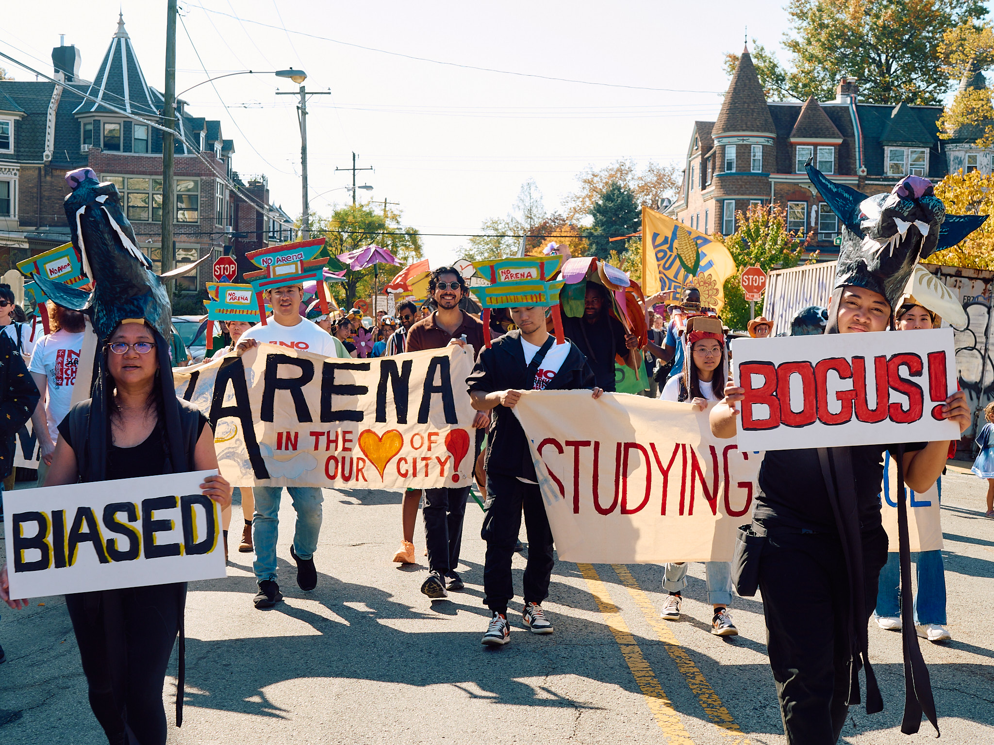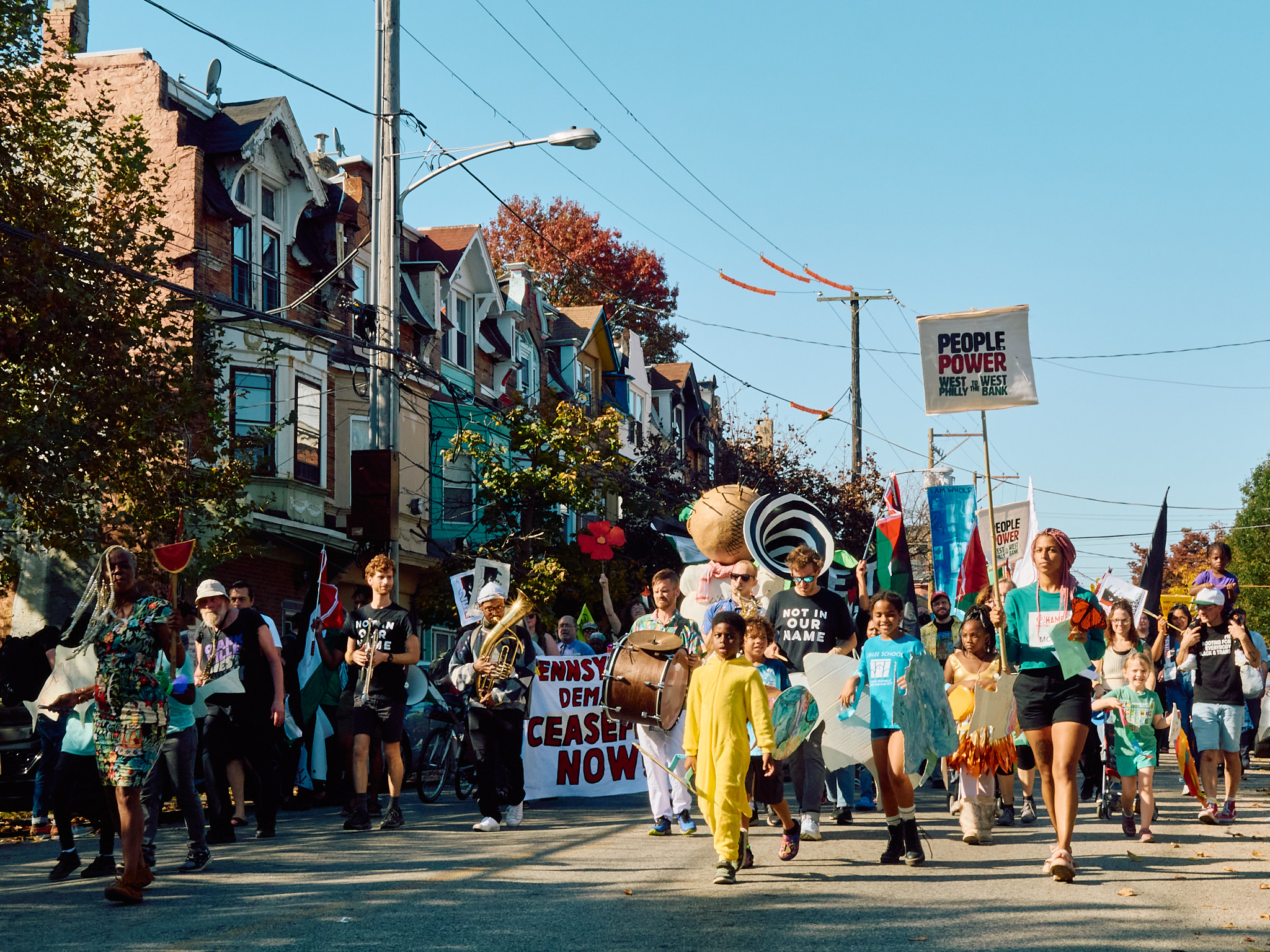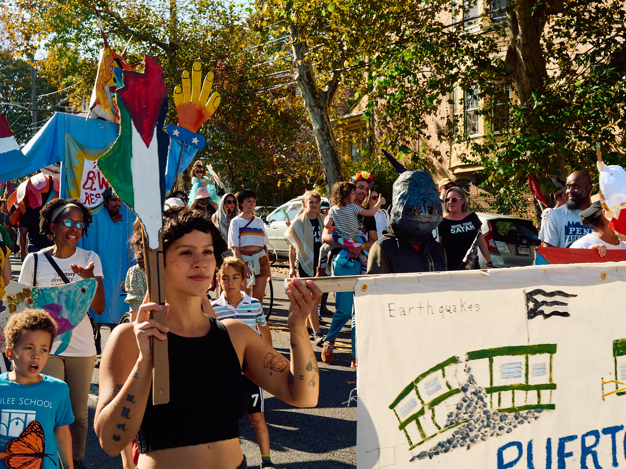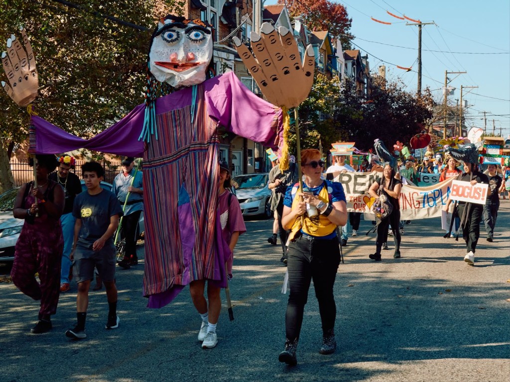 (Hanbit Kwon)Parade participants march and ride in West Philly. (Hanbit Kwon)Spiral Q attracts participants of all ages. (Hanbit Kwon)Dragons represent renewal and rebirth. (Hanbit Kwon)(Hanbit Kwon)(Hanbit Kwon)Flowers represent blossoming into fuller potential. (Hanbit Kwon)A drum line livens up the parade route. (Hanbit Kwon)No Arena in Chinatown Solidarity Group is one of the organizations protesting the proposed arena for the 76ers. (Hanbit Kwon)One of the large puppets made by patients at the Be Well Recovery Center for the Peoplehood Parade (Hanbit Kwon)(Hanbit Kwon)(Hanbit Kwon)Support for Puerto Rico. (Hanbit Kwon)Parade participants call for a ceasefire in Gaza. (Hanbit Kwon)Palestinian flags were proudly displayed. (Hanbit Kwon)The Philly Palestine Coalition (Hanbit Kwon)Anakbayan Philadelphia is a Filipino organization participating in support for Palestinians. (Hanbit Kwon)Basic rights such as food, housing and education were highlighted as human rights for all. (Hanbit Kwon)Organizers against the 76ers arena. (Hanbit Kwon)Supporters of Palestine marching into Clark Park. (Hanbit Kwon)(Hanbit Kwon)(Hanbit Kwon)(Hanbit Kwon)Collaboration is a central value of Spiral Q (Hanbit Kwon)Blossoms represent life, growth, and potential. (Hanbit Kwon)The Lenni Lenape land that Clark Park’s Dog Bowl sits upon was hollowed out by the water of Mill Creek then Mill Pond. Here, participants represent the water that once flowed here, carving out change. (Hanbit Kwon)A mock debate about the proposed 76ers Arena, in which many promises and proposals like the upcoming impact study for a proposed arena in Center City is questioned and debunked, comparing it to “a wolf in a sheepskin” tactic. (Hanbit Kwon)Water supports the soil and the earth we all rely upon. (Hanbit Kwon)Water is represented by flowing fast-moving fabric. (Hanbit Kwon)Spiral Q offers multiple entry points for participants, from planning and brainstorming to fundraising, building, painting, and even dancing. It’s a true community effort. (Hanbit Kwon)Green was a popular color choice, representing growth and life. (Hanbit Kwon)