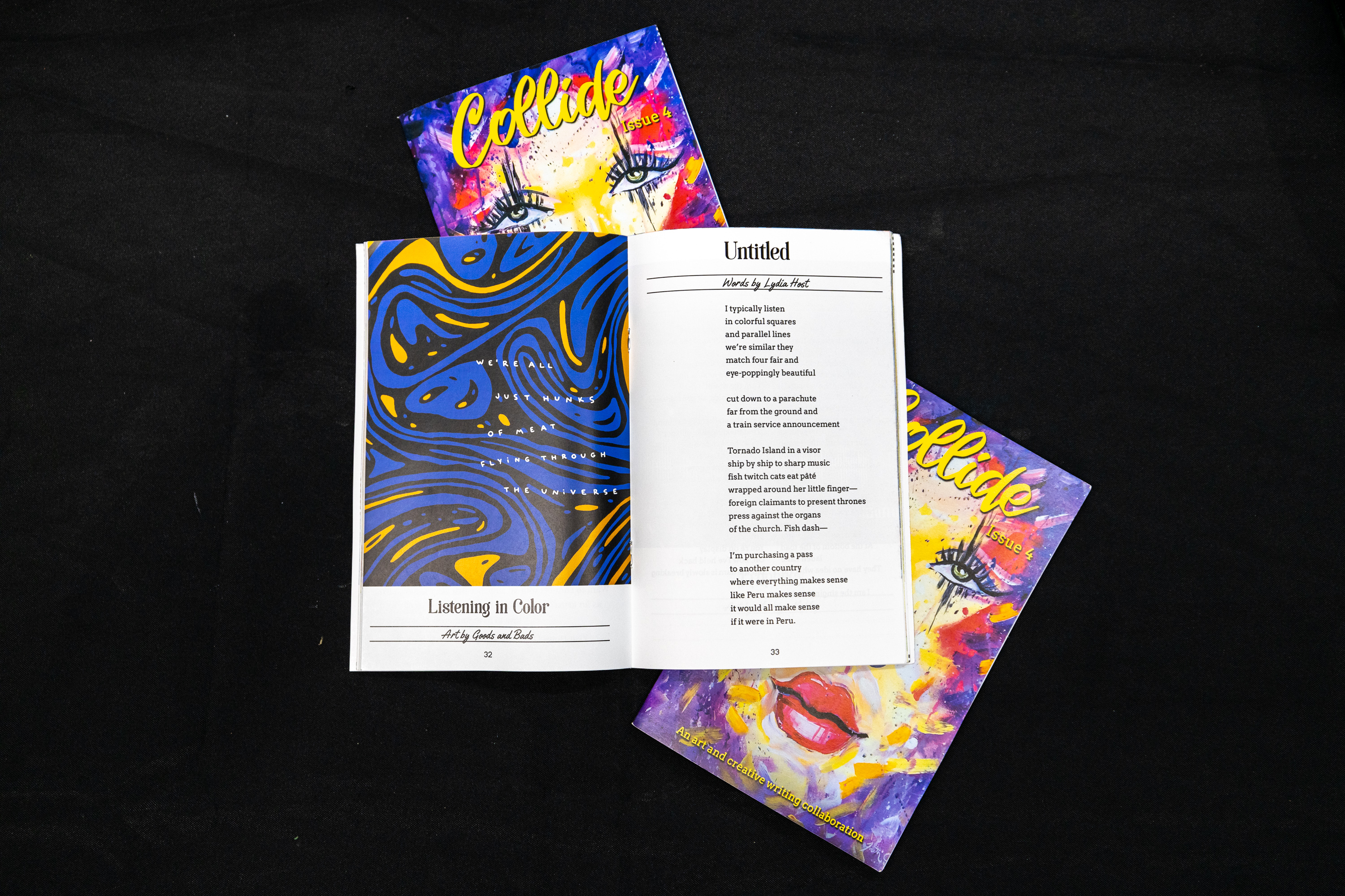 Lindsey: That’s a good question. I have a good friend who recently ended her magazine that ran for ten years. And she has kind of helped me picture what Collide is going to be in the future. I don’t think, at this point in time, we’re ready to go to full-fledged magazine, but it is definitely in the back of my mind.
