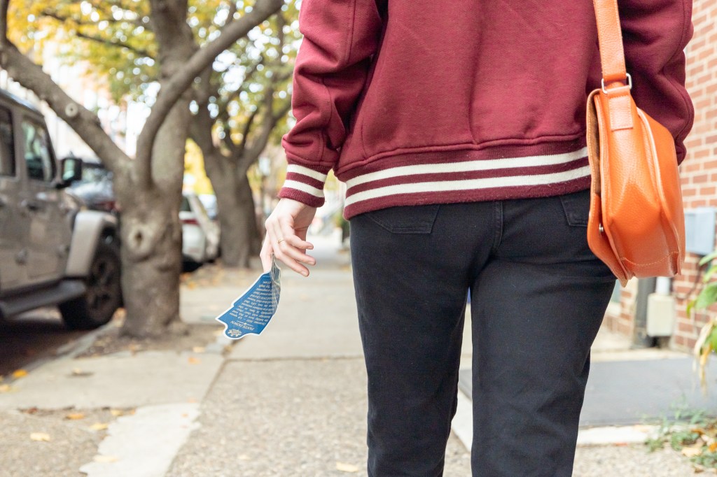 PF: I do. Usually, when someone submits and I write one, I usually print about five of them. And I just, within like three or four months, go back to see if it’s there and replace if so. Based on the neighborhood, based on who has to look at it… there’s a couple that have been taken down more times than others. I think the one that actually lasted the longest was at Jefferson Hospital, which is wild, because that’s right in Center City. I don’t know why it just survived all that time. But it was like 8th and Chestnut or something. Versus there’s one at 10th and Carpenter, near Bardascino Park, that I’ve put up, like, ten times maybe at this point, because I just love it, and I just want people to know about it. And I always get emails about that one being, like, something people like to see.