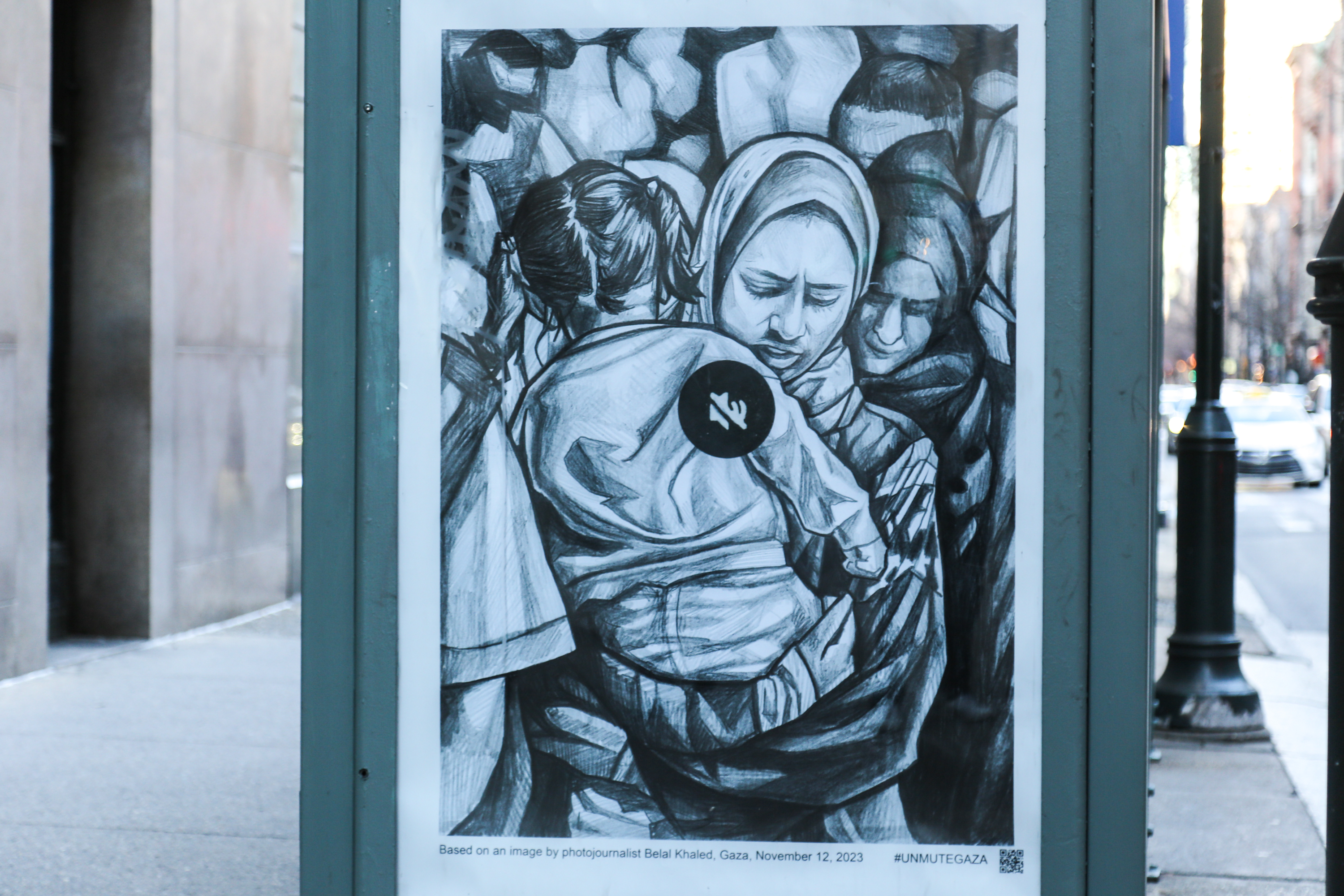 “Unmute Gaza is a campaign that brings photographers in Gaza together with artists and activists to humanize the people of Gaza, share the crisis unfolding there, and declare a refusal to remain silent on this issue,” Art in Ad Places wrote on Instagram. “Dozens of artists and photographers have collaborated on posters. Unmute Gaza makes the posters available for free download on their website, and the images have been appearing on streets worldwide.”