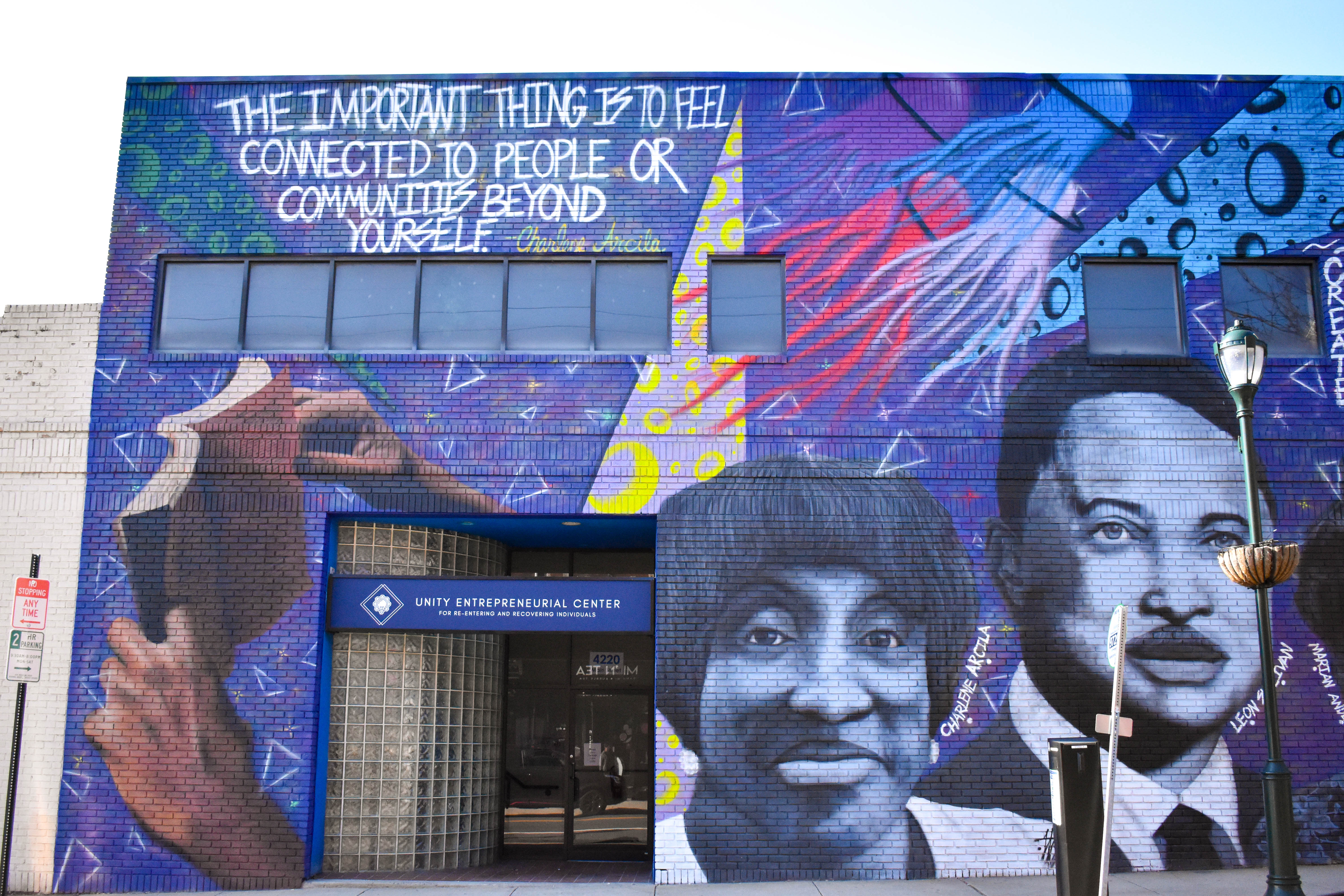 The mural lives on the wall of the Unity Recovery organization, an inclusive nonprofit supporting those with substance use concerns.
