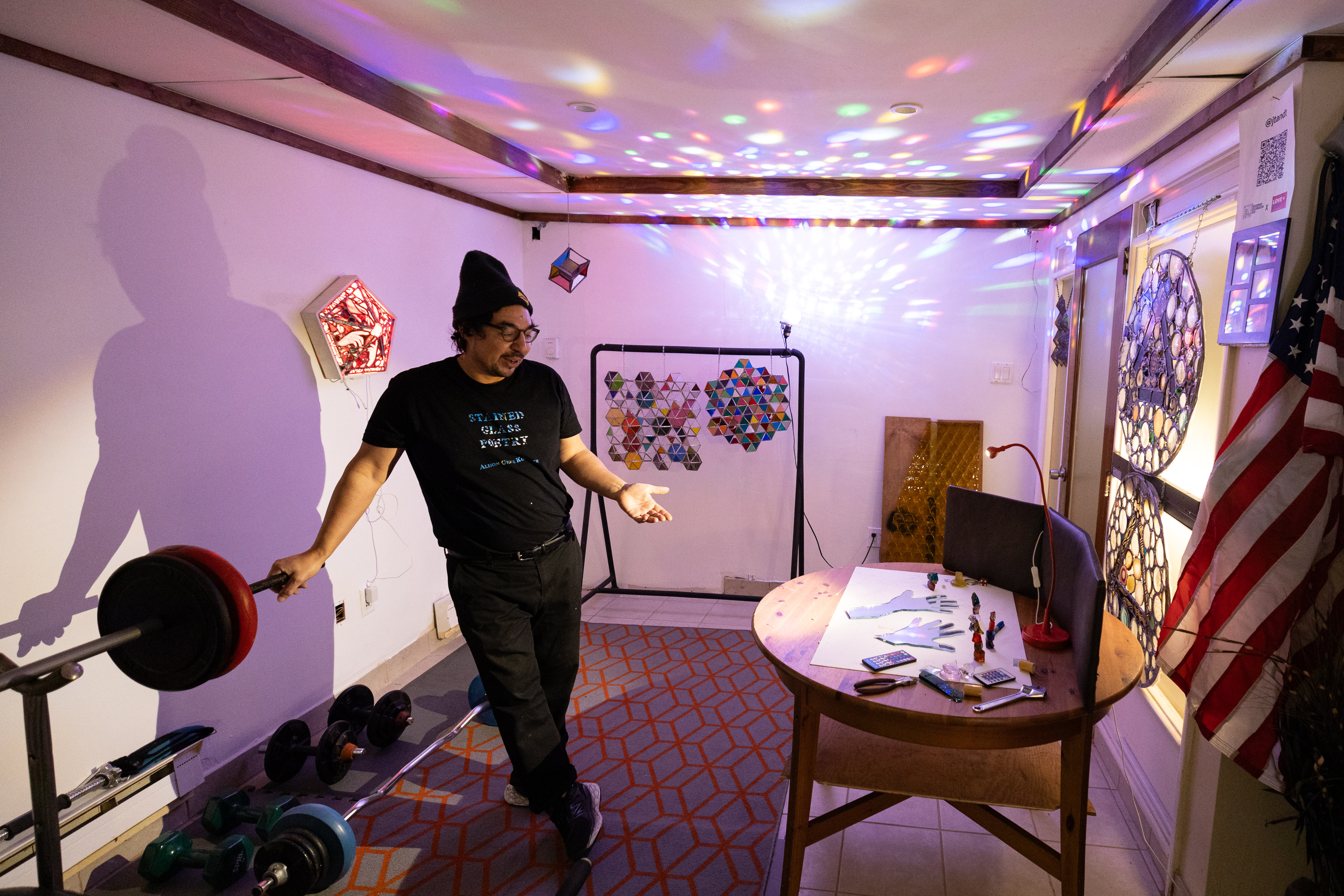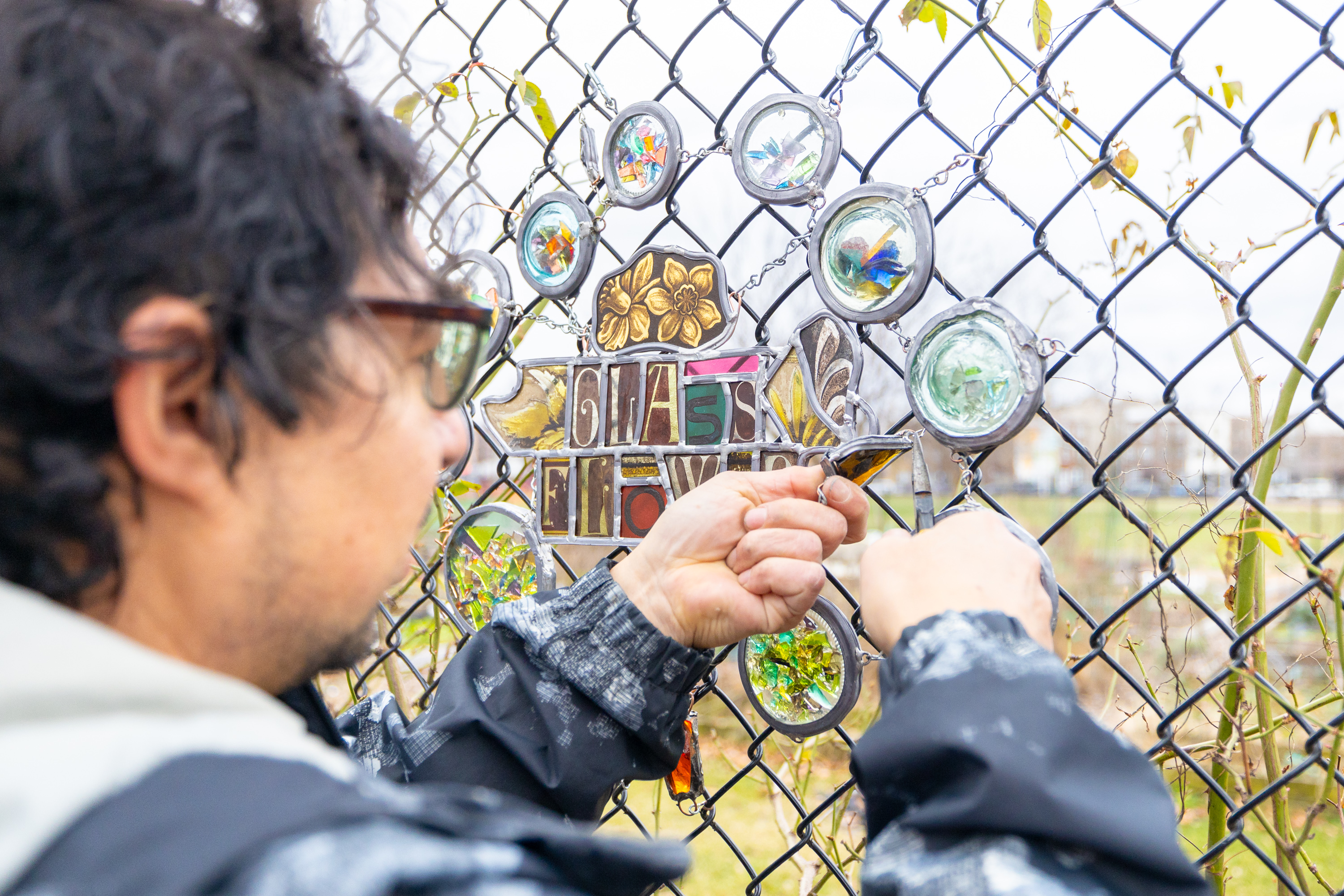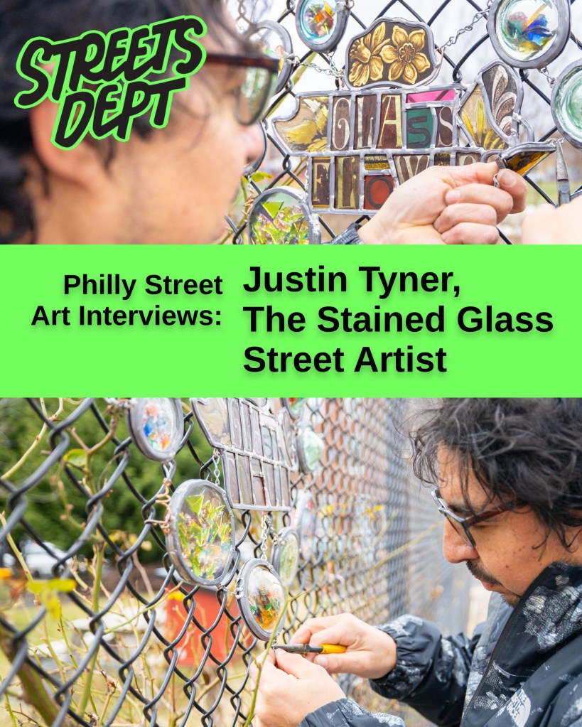 If you’ve ever seen an arrangement of glass pieces hanging from a fence in Philly, you’ve had the opportunity to be transformed by the power of light, thanks to stained glass street artist Justin Tyner.