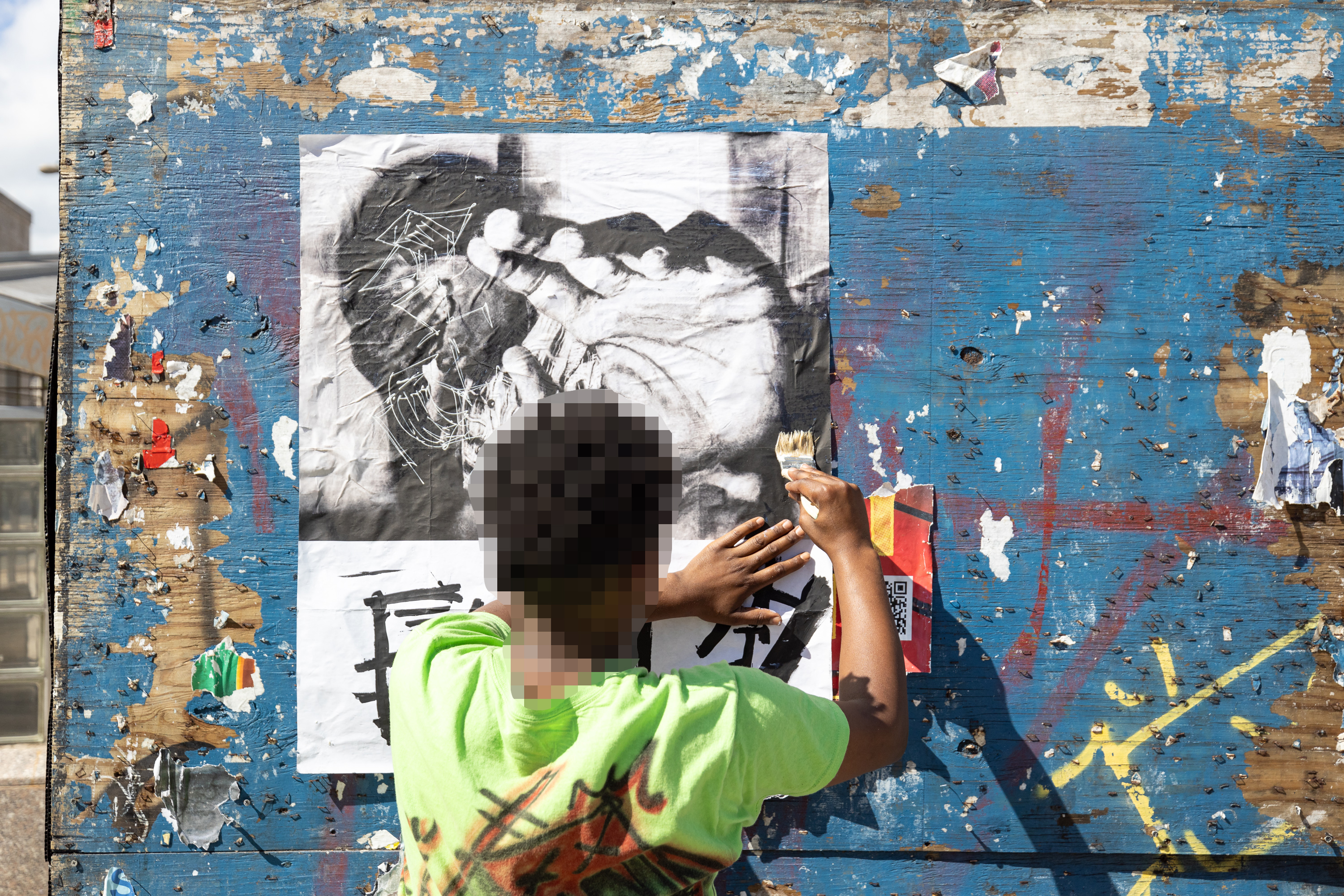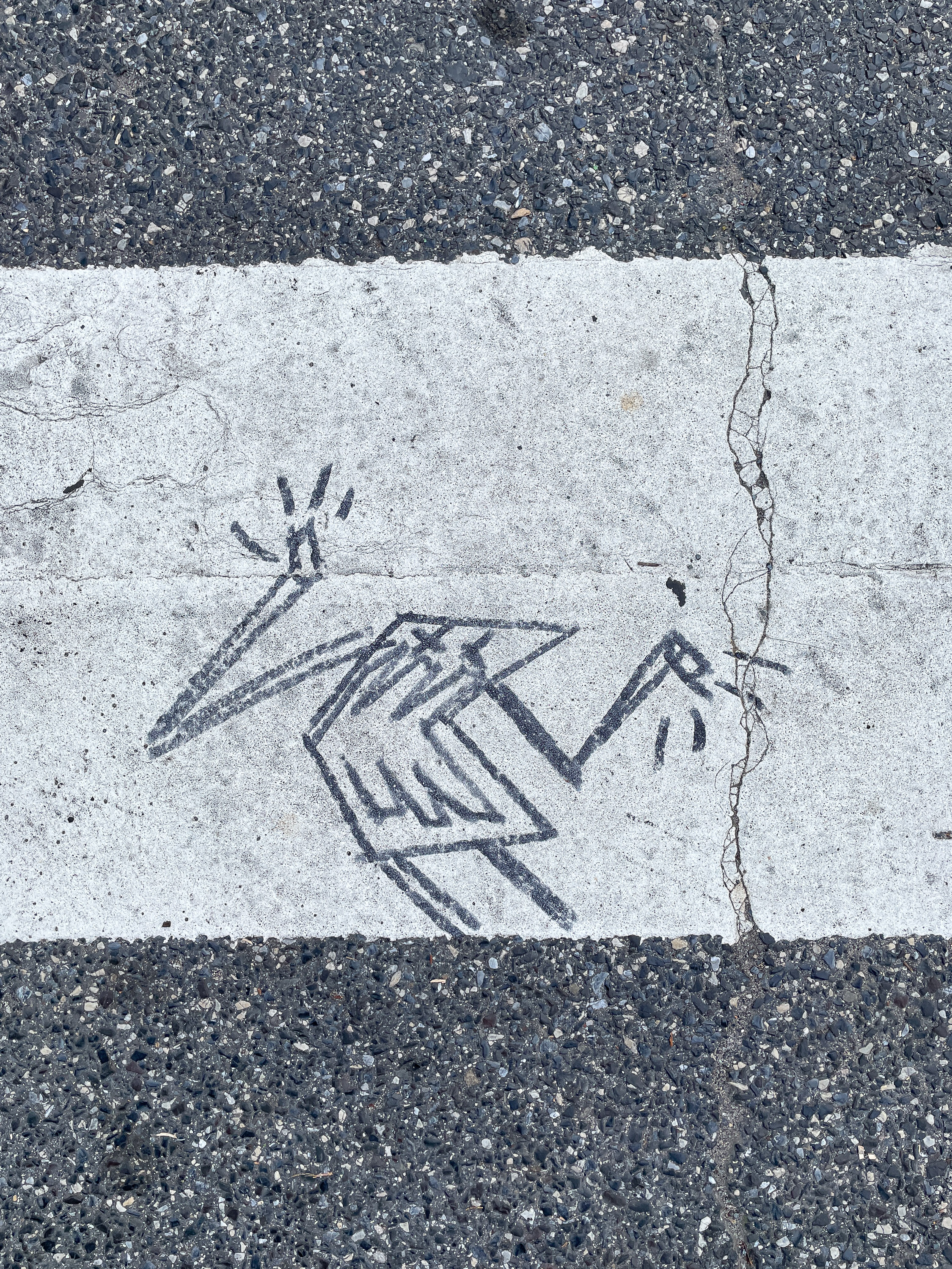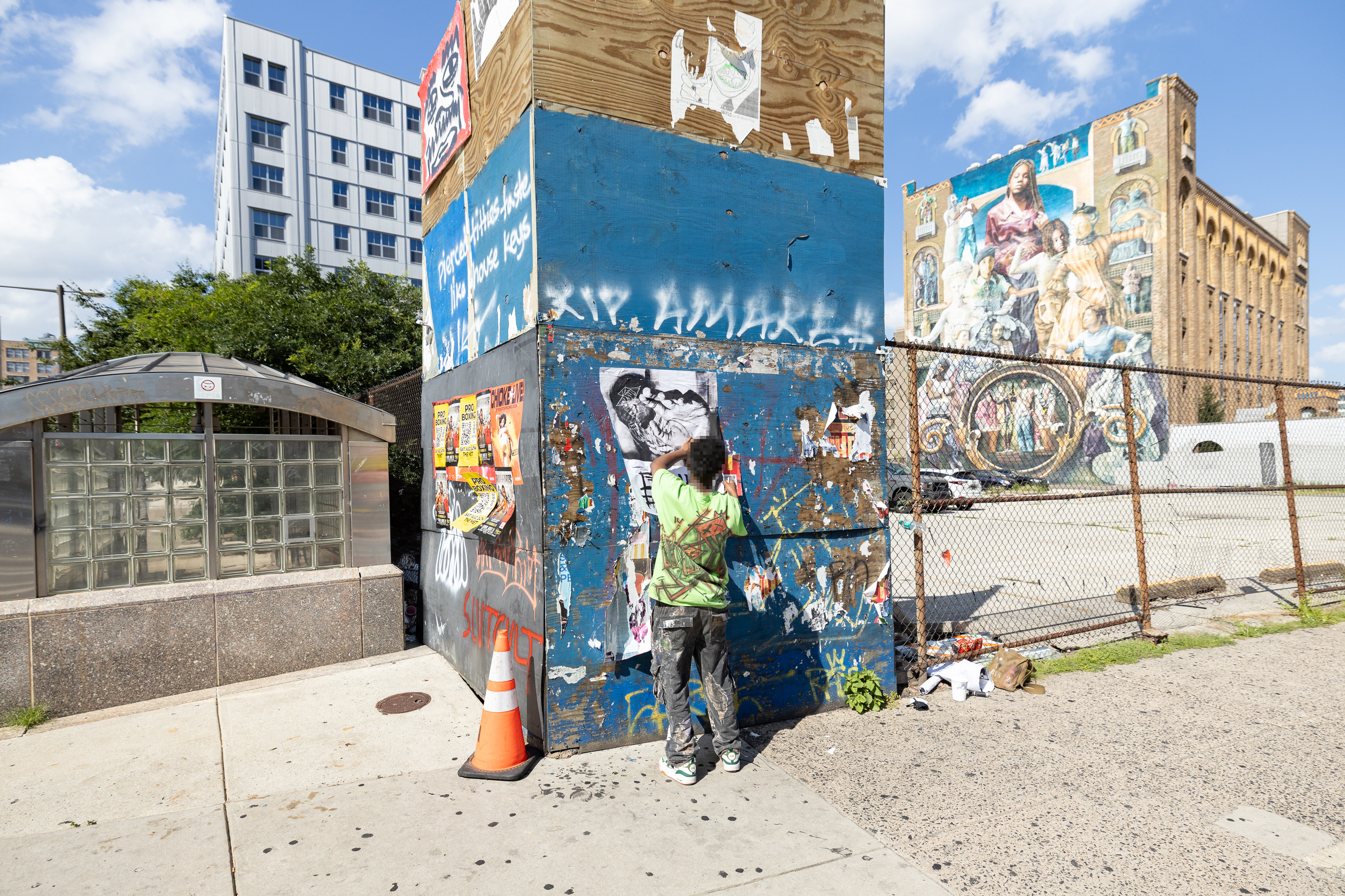 So I’m just using them to express myself, I guess, in a more playful way, given the subject is hard to talk about. But they came about when I first moved to Philly, just sketching different things, not really being an actual graffiti artist—whatever that means. They helped me get ideas out in a more playful way, and [served as] guerrilla marketing to bring people back to the work I’ve always been doing.
