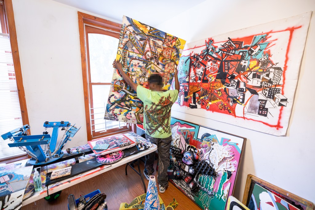 I’ve always done fine art; I was always self-taught—graffiti didn’t start until I moved to Philly. I came to Temple University, and my art just transitioned. I wasn’t really thinking about oh, I’m gonna get caught. That side of graffiti never really hit me, as far as hiding and all that. I just feel like my art transitioned. I just gained a whole different medium to express myself, as far as I’m concerned.