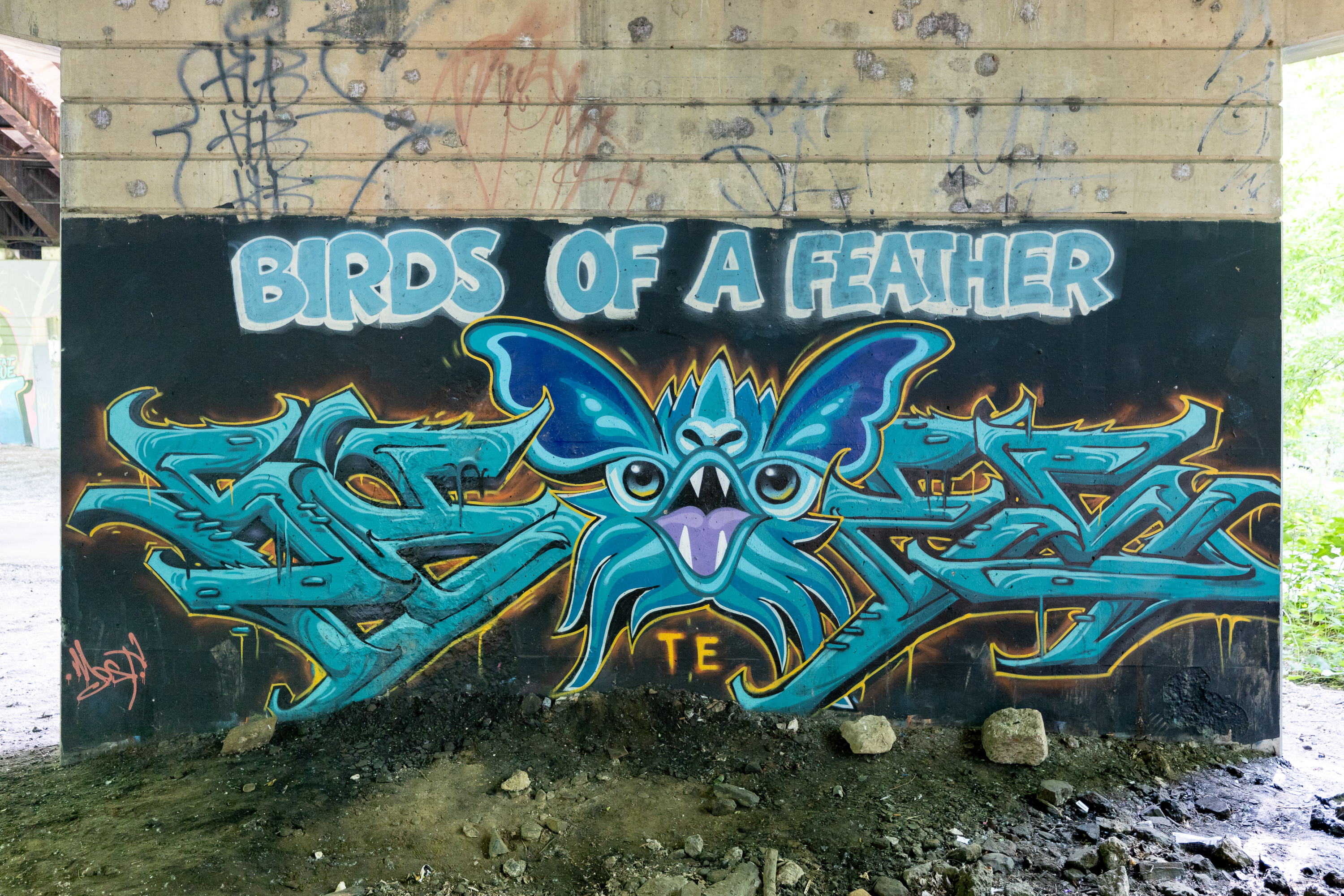 “It’s the nature of the beast,” Evan says. The murals’ location under the Whitaker Avenue overpass is “kinda the perfect practice ground for novice tags—which mostly is what I’ve had to deal with.”