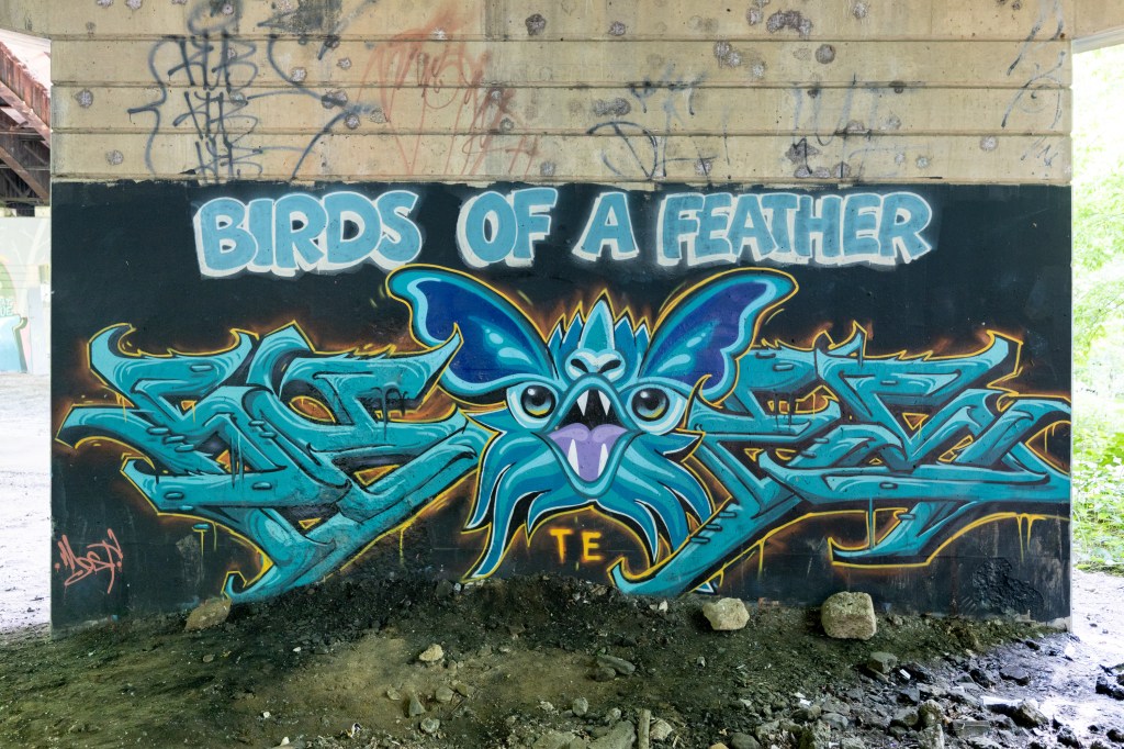 “I decided to add the names of the birds in a graffiti style in hopes that it may be respected a bit more and to let people know that this project was done by someone who knows their way around a can,” Evan said. (Evan got his start as a graffiti writer.) Hopefully this subtle visual communication helps reduce the amount of vandalism these commissioned paintings face.