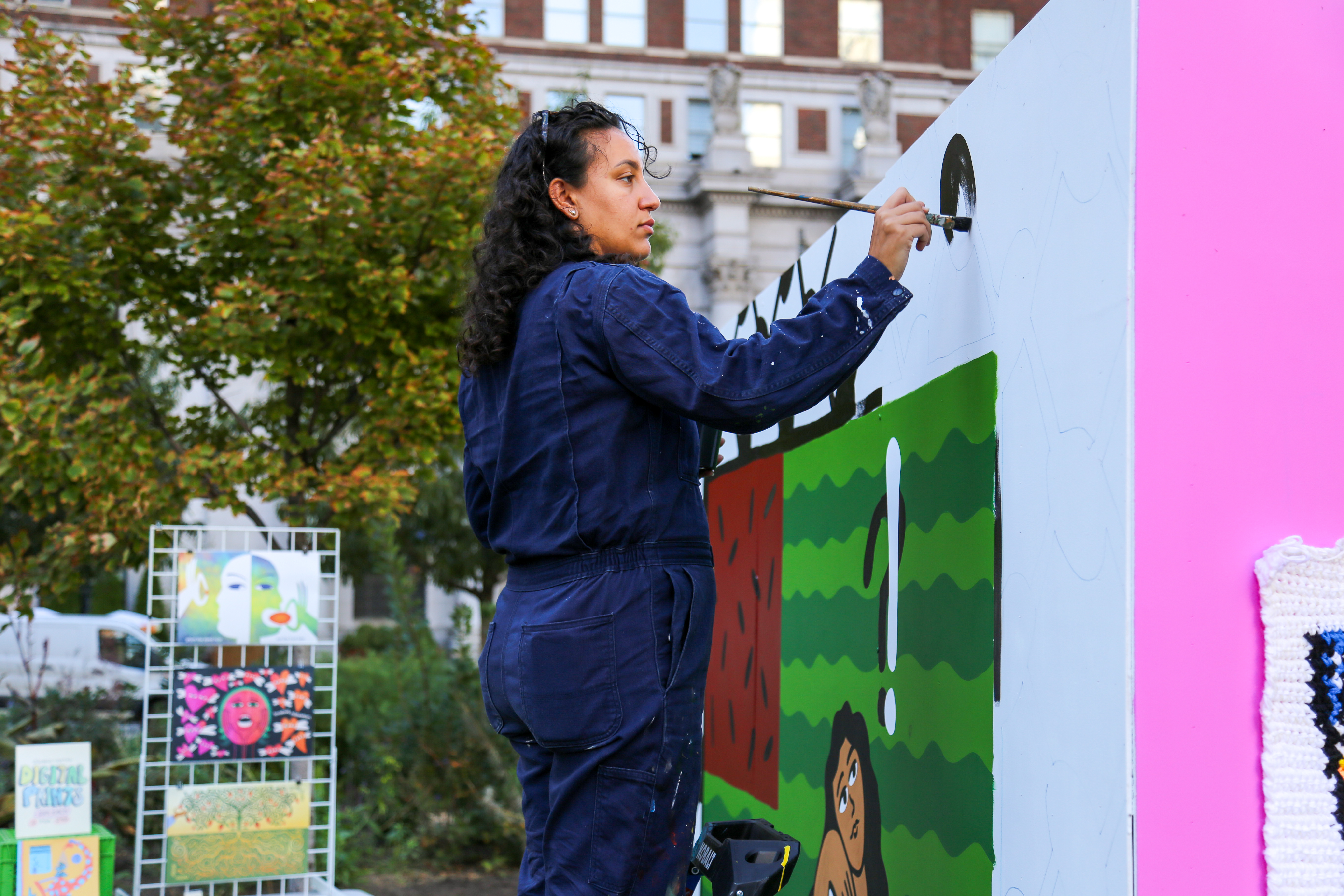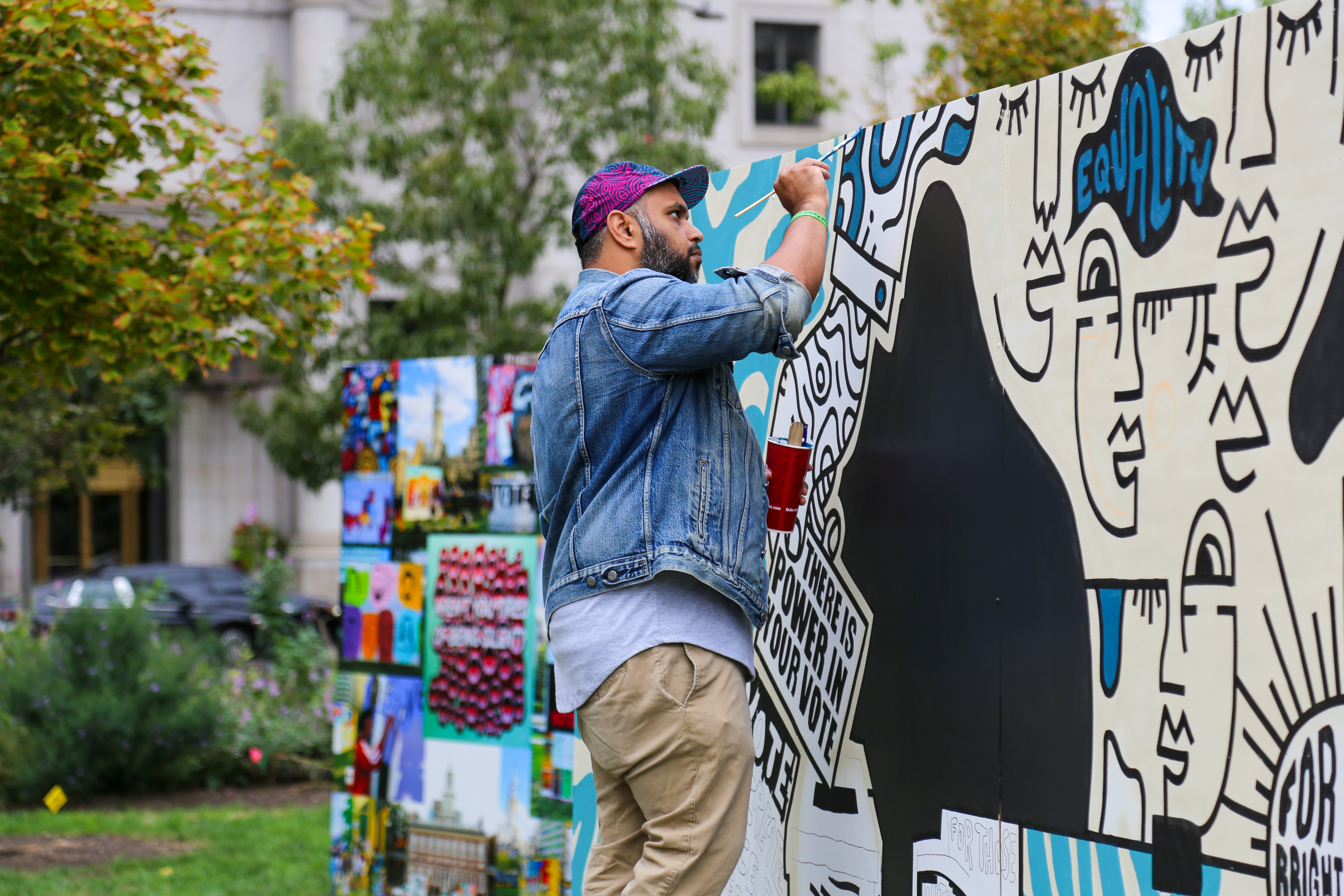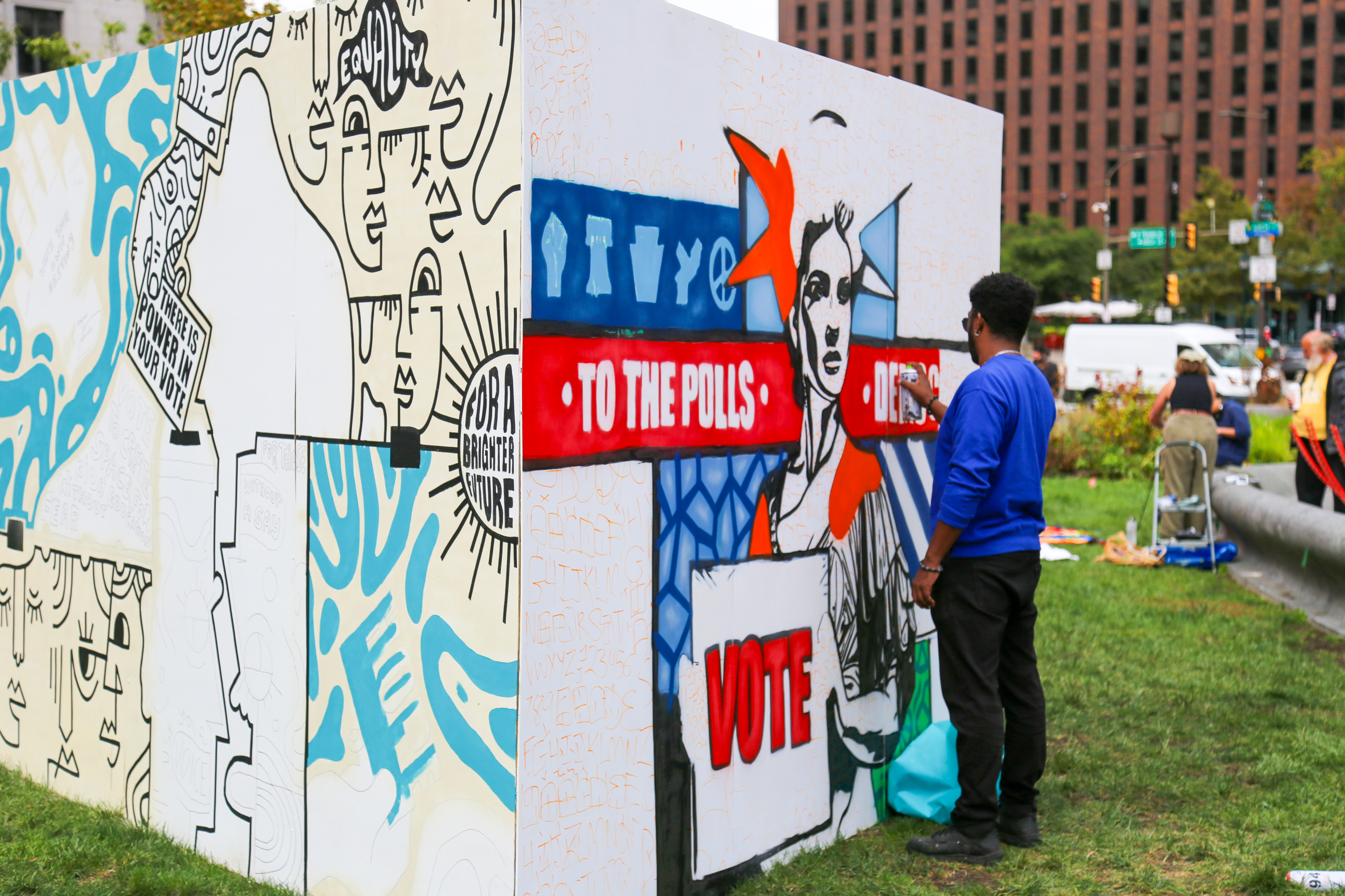 Organized and curated by Conrad Benner (@StreetsDeptWalls) with Mural Arts Philadelphia, our project has worked with six Philly-based artists to create six 8×12-foot murals to rally the Philadelphia community around civic participation through the act of voting.