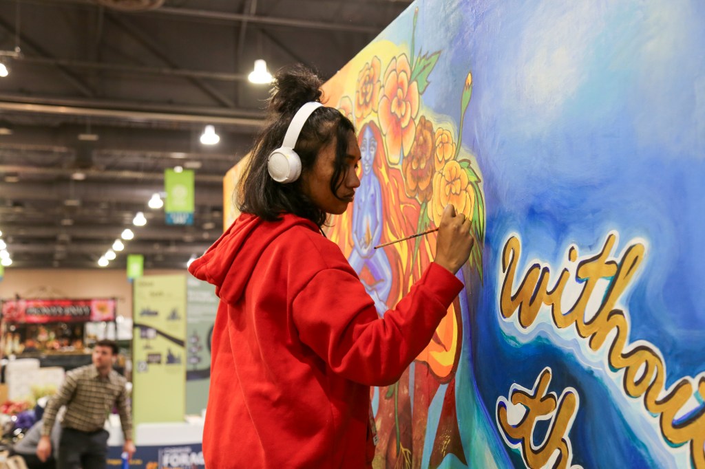 This year’s Flower Show theme is Gardens of Tomorrow. To play within that, we developed the following project statement for each of our 2025 artists to build from: “Daffodils Blossom in Our Future Dreamscapes. The future will be blooming. The future will celebrate our shared vibrancy. The future will host meaningful abundance. Tomorrow is born from the seeds planted today. In Daffodils Blossom in Our Future Dreamscapes, Philadelphia area muralists dream in muralism.”