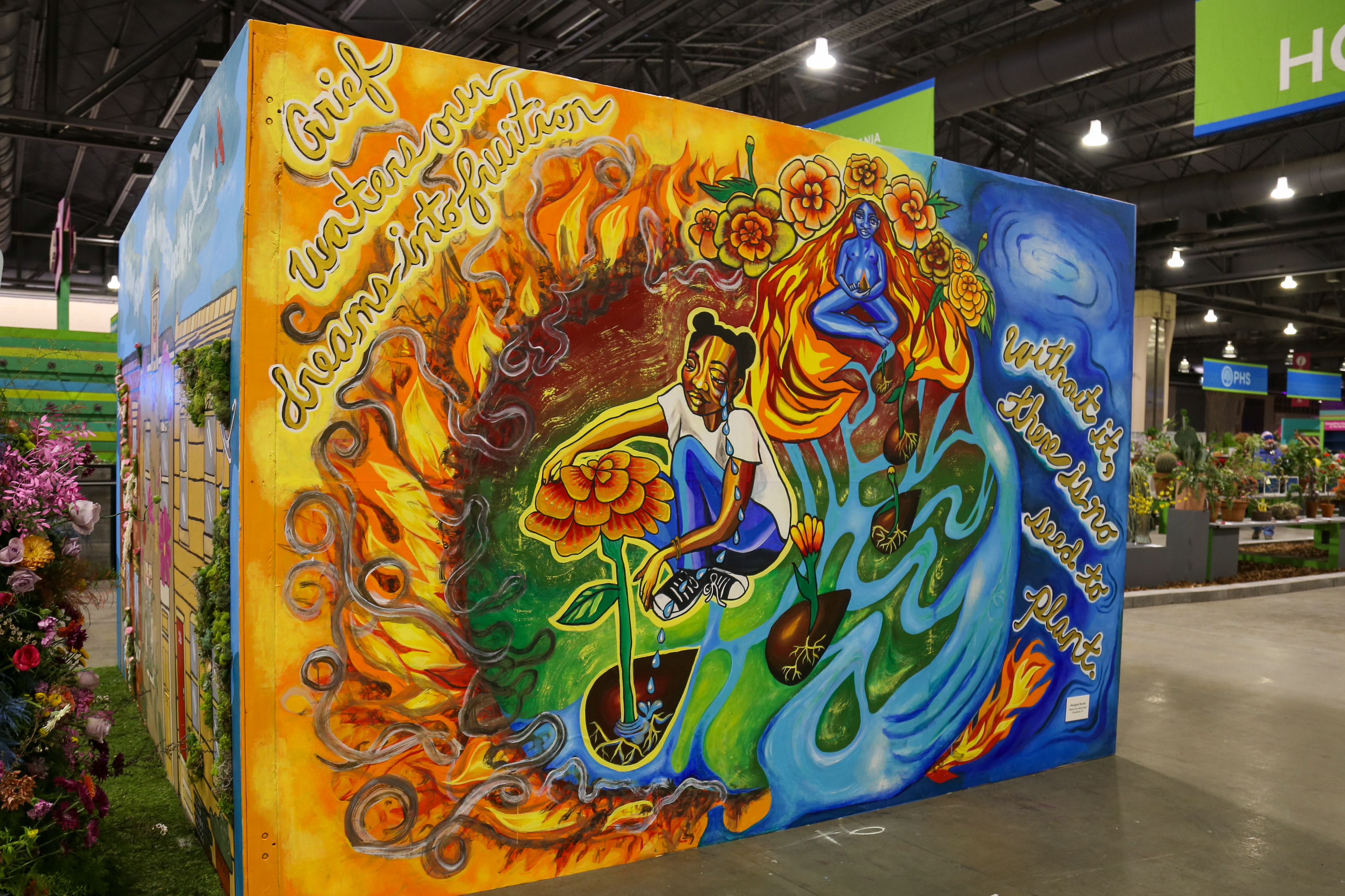 Streets Dept Walls is back at the oldest and largest indoor horticultural event in the world, the Flower Show, to curate a project with local artists for the fifth year in a row! And for the third consecutive year, we’ve done this with the support and collaboration of the nation’s largest public arts program, Mural Arts Philadelphia.