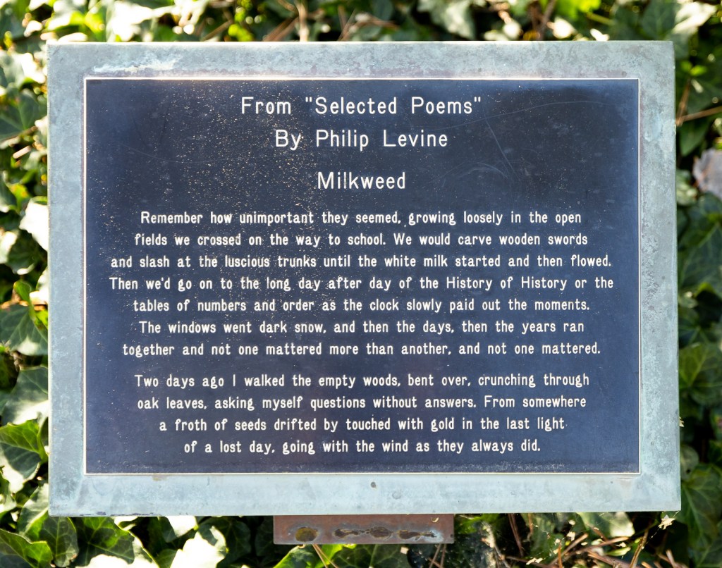 In addition to sculpture, there is also some poetry sprinkled around! I think this is such a fantastic idea. Reading this poem about a plant while standing in a garden was quite a delightful experience, and I don’t know why this isn’t more common. I think we need more public poetry.