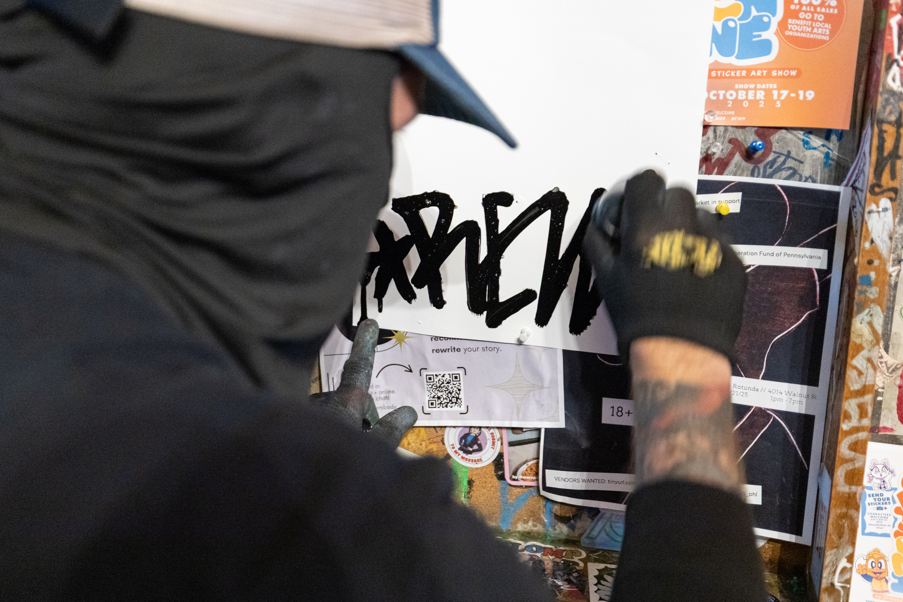 But in the purest sense of graffiti, it’s vandalism. In the sense of graffiti graffiti, to the purest form, where you’re writing your name—and especially in Philadelphia, the handstyles—it’s vandalism. I don’t know, I think it could be a little bit of everything. I don’t know. I don’t like fuckin’ anyone telling me what I can and can’t do, and so when it comes to things I’m passionately doing, I don’t like to label it either, in a sense. It just is what it is, for me. To me, it’s my fuckin’ lifeline right now. I don’t think it needs to be under any label.
